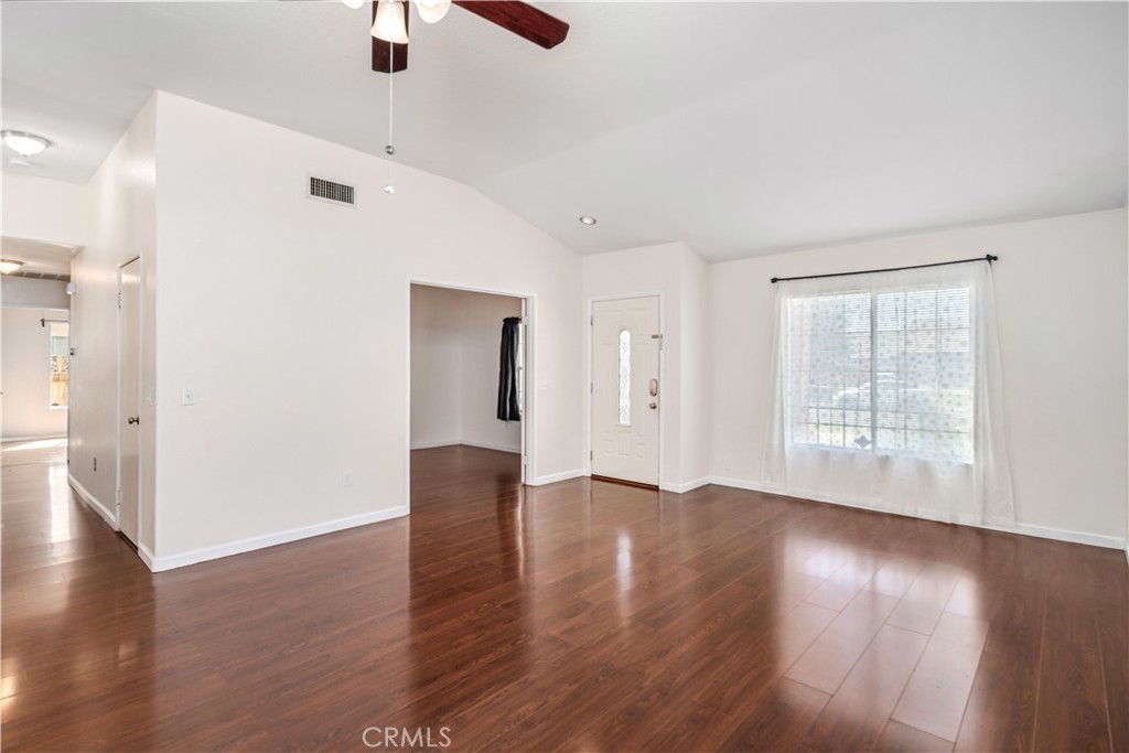Don’t wait! This beautifully upgraded single-story home is move-in ready and available for a quick close—you could be celebrating the holidays in your new home! This 4-bedroom, 2-bathroom home offers over 1,600 sq. ft. of bright, open living space with high ceilings, laminate wood floors, and modern finishes throughout. The open-concept kitchen shines with granite countertops, stainless steel appliances, and ample storage, flowing seamlessly into both the formal living room and cozy family room with a fireplace—perfect for entertaining or relaxing nights in. The spacious primary suite offers a peaceful retreat with a walk-in closet, dual sinks, and updated en suite bathroom. All appliances are included, and you’ll love the indoor laundry room, upgraded bathrooms, and energy-efficient solar system. Step outside to a private backyard oasis with lush planter beds, mature landscaping, a covered patio, and paved side yard—perfect for outdoor dining or play. The attached 2-car garage and upgraded fencing complete the picture.