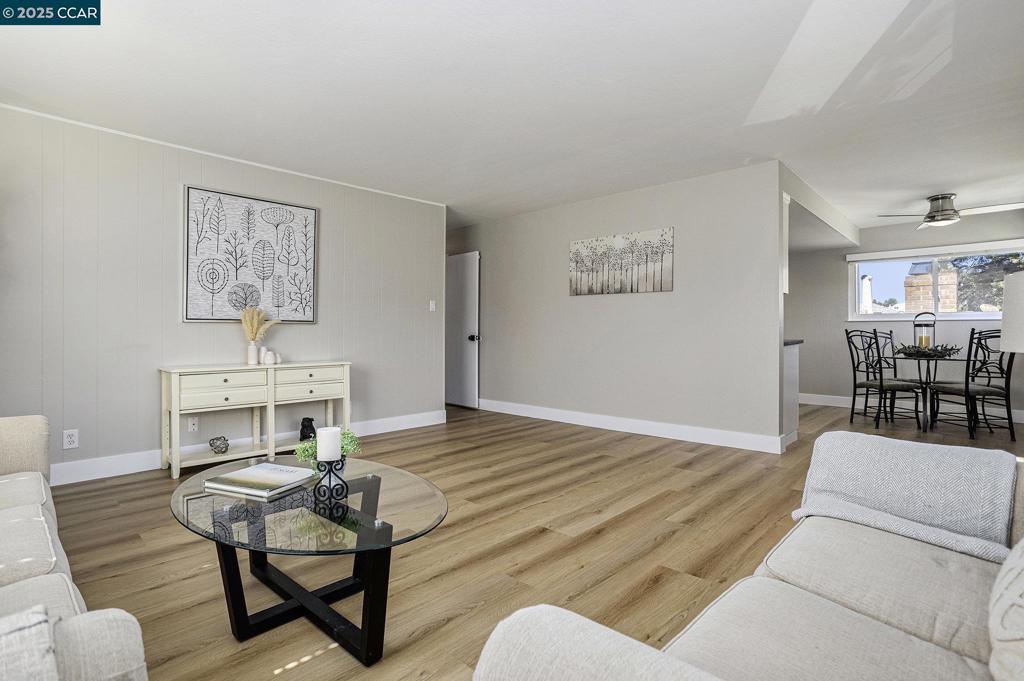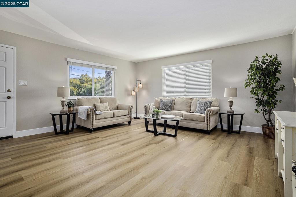 Admired neighborhood near vibrant downtown Martinez! Spacious living room. Kitchen with white cabinetry, quartz counter tops, tiled backsplash & stainless-steel appliances including refrigerator. OWNED Solar panels (installed in 2024). Fresh interior paint, newer vinyl plank flooring including upgraded baseboards, double pane windows, raised panel interior doors, spacious 2 car garage and central heating & air conditioning. Hall bathroom with newer vanity, sink, faucet, flooring & toilet. Primary bathroom with tiled walk-in shower & flooring, plus newer vanity, sink, faucet & light fixture. Downstairs and included in the square footage (800+/- Square feet) is a huge laundry room/workshop/craft room & two large rooms with many possibilities…family room, game room, office, music room, 2nd unit? (Agent has not verified, buyer to investigate.) Front porch with views of the hills. Backyard is perfect for entertaining with large recently painted deck, stamped concrete patios & hot tub. Conveniently located…minutes to downtown where you can enjoy the Farmer’s Market, restaurants, shopping, breweries, coffee houses, the marina, parks, bocce ball, hiking trails & much more. Easy access to highway 4 and 680 and just minutes to Amtrak & BART. OPEN Sunday 10/12/25 1pm to 4pm.