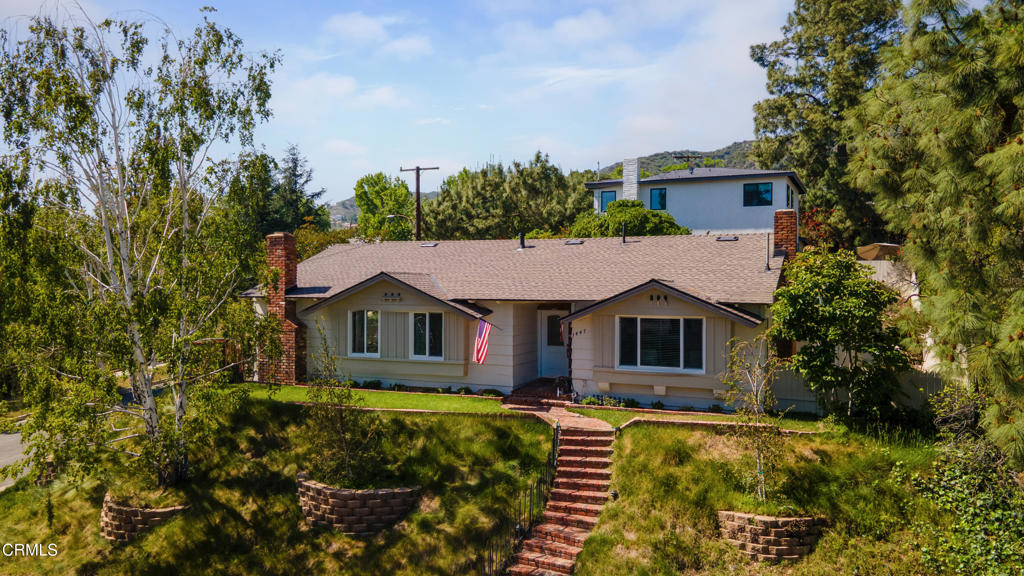 Discover the timeless elegance of this charming La Crescenta home perched high above street level, showing great pride of ownership. Lovingly maintained, this home has a formal entry that invites you into a functional floor plan with a living room that has a fireplace and a picture window, an open kitchen with a breakfast bar and adjoining dining area, an oversized pantry, three bedrooms, two bathrooms, hardwood floors, crown moulding, a newer roof and garage door, and more. The primary bedroom offers a view of the trees and beautiful sunsets. One of the additional bedrooms has a lovely brick fireplace and doors that lead to a brick patio, perfect for relaxing and winding down at the end of a day. Come and enjoy all of the desirable features offered in this wonderful home.