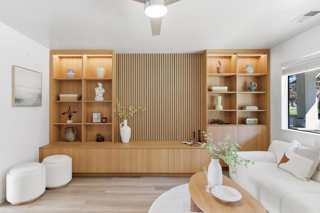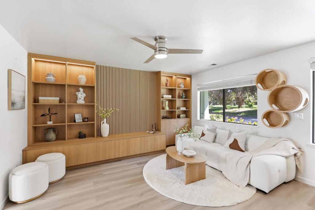 Welcome to this fully remodeled townhome in the heart of Ardenwood! This fully remodeled Ardenwood townhome is perfect for first-time buyers, featuring a bright open-concept layout anchored by a 2025 custom built-in bookshelf. A comprehensive 2021 renovation delivered a reimagined kitchen with modern cabinetry, new flooring, designer fixtures, and a total bathroom remodel. Upstairs hosts two spacious bedrooms, while the main level includes a guest powder room. The private outdoor oasis boasts a 2021 landscaped yard with a deck and grape trellis pergola. Practical upgrades include a 2022 water heater, security system, a 1-car garage, and 1 designated carport, with HOA fees covering water and garbage. Ideally located near Ranch 99, dining, and scenic trails at Coyote Hills, this home offers easy access to Hwy 84, I-880, and major tech hubs. Families will benefit from top-tier education at Forest Park Elementary and the 10/10 rated American High School.