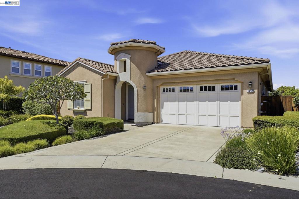 Luxury resort living at The Village, in the 55 and up community. The community features a clubhouse, gym, library, card room, outdoor barbecue, Bocce ball courts, pool and Spa. This gated community offers security to homeowners. This Mediterranean style home is all on one level, features include a title roof, solar panels, a tankless water heater and a two car garage.The kitchen boasts granite counters, a large island, pantry and stainless steel appliances. The great room has a gas burning fireplace and wood floors. The spacious primary bedroom suite includes carpeting and a walk-in closet. Private court location with a extra large lot. This home offers three bedrooms and two and one half bathrooms. Don’t miss this highly upgraded home built by Ponderosa home builders.
