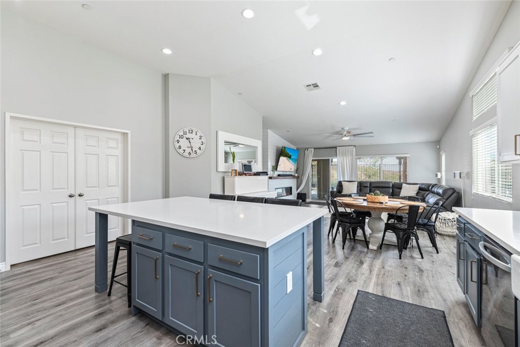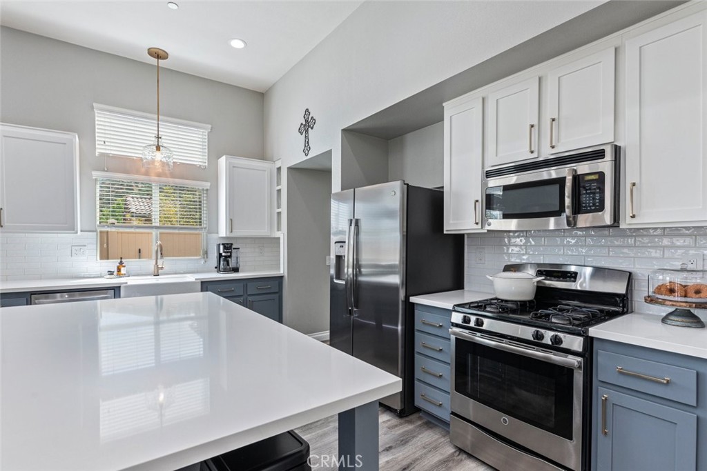 This beautifully updated single-story home is perfectly positioned on a quiet cul-de-sac, offering breathtaking hillside views that stretch for miles. As you arrive, you’re welcomed by a spacious front courtyard—an ideal spot to relax and take in the peaceful surroundings. Step inside to discover a thoughtfully designed open floor plan, highlighted by a recently remodeled kitchen featuring modern two-tone cabinetry with crisp white uppers and stylish gray lowers, an oversized island, quartz countertops, a designer backsplash, and stainless steel appliances. With abundant storage and seamless flow into the dining and great room, this space is perfect for both everyday living and entertaining. Just off the kitchen, a versatile den provides the perfect space for a home office, gym, or kids’ study and gaming area—and could easily be converted into a 4th bedroom to fit your needs. The inviting living space is anchored by a modern electric fireplace that adds both warmth and ambiance, creating a cozy yet open feel. The primary suite offers a private retreat with a large walk-in closet, a spa-like bathroom with a separate soaking tub and glass-enclosed shower. Step outside to your backyard oasis, complete with stunning views, a covered patio with lighting and ceiling fans, and low-maintenance artificial turf—perfect for relaxing or hosting guests year-round. Additional highlights include updated flooring and baseboards, a spacious laundry room, and energy-efficient features throughout—including solar with a low monthly payment, helping you save on utilities while enjoying modern comfort. Located in the highly desirable Canyon Hills community, west of Canyon Lake, this home is just moments from a brand-new elementary school, parks, shopping, and resort-style amenities. Residents enjoy access to multiple recreation centers, neighborhood parks, and over 900 acres of preserved open space. This is more than a home—it’s a lifestyle. Don’t miss your opportunity to own this incredible property!