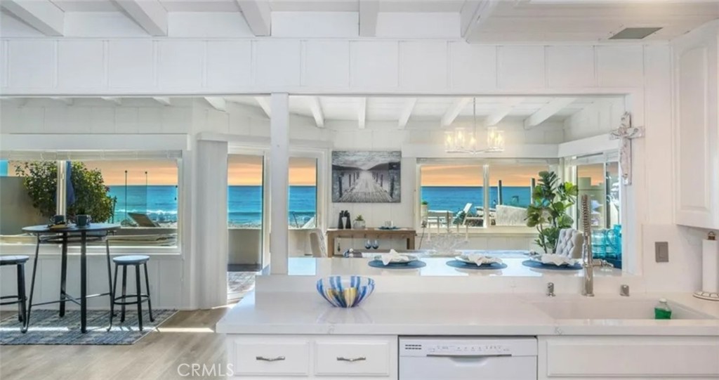 *Fully-Furnished Lease* This newly redesigned modern cottage beach house sits on the sands of Capistrano Beach in the exclusive guard-gated community of Beach Road in Dana Point. The first floor features an expansive kitchen, open-concept family room, and dining area with full ocean views. The living area opens to the outdoor patio and large deck used for dining or lounging and offers relaxing and breathtaking views of the surf break and Catalina Island. The kitchen features quartz countertops, a breakfast bar, and a built-in refrigerator. The family room features beamed ceilings, vertical wood plank walls, and a stacked stoned fireplace. The dining area features a chic chandelier and a built-in curio cabinet. Down the hallway features a spacious den with modern farmhouse double barn doors, a brick fireplace, with double daybed. Adjacent is a bedroom with mirrored closet doors and a full bathroom with a stone-tiled bathroom and shower. Upstairs offers a master bedroom that opens to a sizable private balcony overlooking the beach and features dual mirrored closet doors and a ceiling fan. The upstairs bathroom features half-stone-tiled bathroom walls and a walk-in shower and two additional upstairs bedrooms with mirrored closets door. The home also includes an additional half bathroom, a laundry area, and a large one-car garage with additional storage space. An outdoor shower is located on the side of the house and plenty of space to store ocean toys. There is ample guest parking to accommodate six vehicles which not all properties do on this strip. The amenities of the gated community include 24-hour surveillance and security cars that patrol the premises, along with an armed guard a couple of days a week. Just within a few miles from Dana Point Harbor and Doheny State Beach.