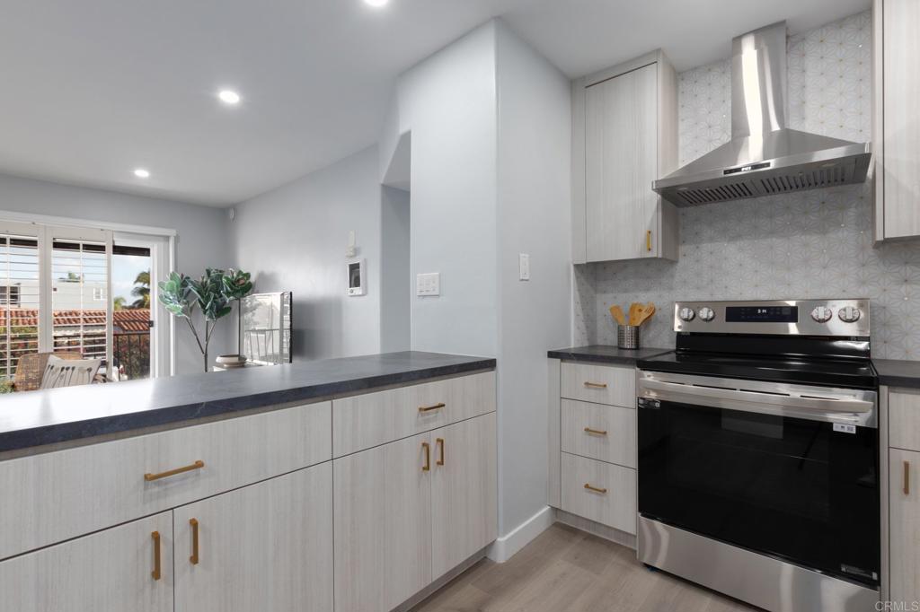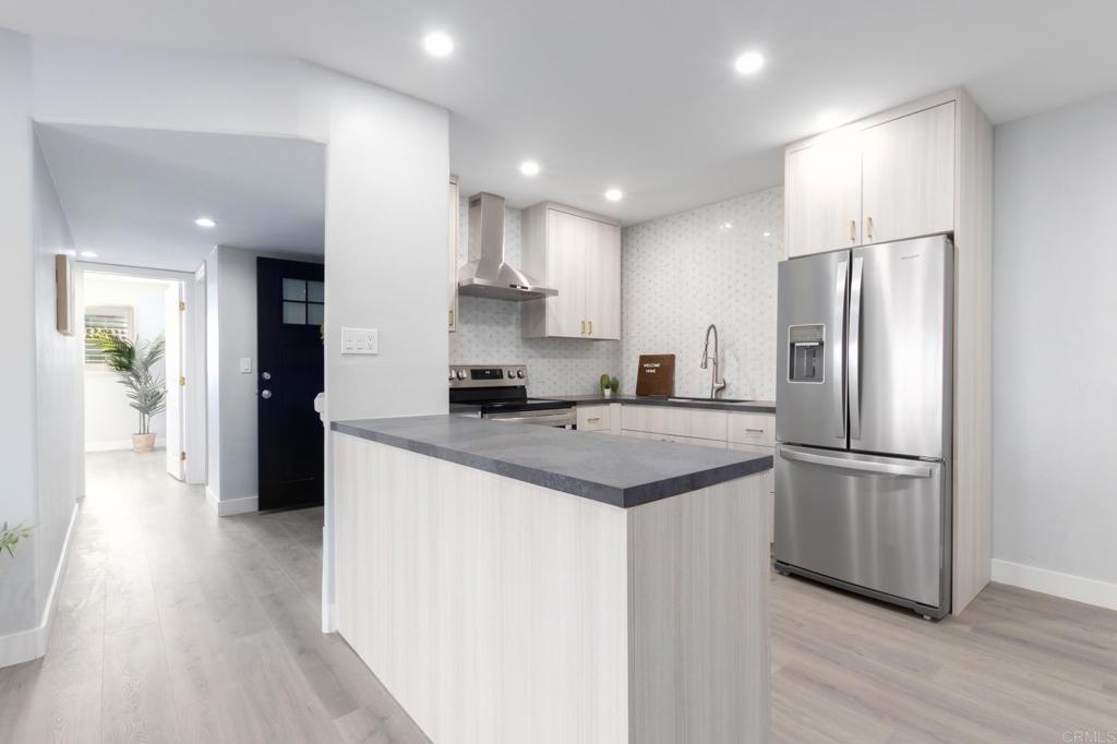Enjoy Point Loma living at its finest in this modern and bright condo just steps away from the beach. Located in the gorgeous La Playa neighborhood, you’re within walking distance to shops, restaurants and across the street from Kellogg Beach. Enjoy the numerous bike and walking trails in the neighborhood, or take a quick drive to the iconic Cabrillo National Monument, Liberty Station or Sunset Cliffs Natural Park. This unit is on the first floor and southern facing, flooding the space with natural light and offering a peek-a-boo view of the bay. The 950-square-feet of living space has been completely remodeled with custom kitchen cabinetry, gorgeous stone countertops, brand new appliances and upgraded bathroom fixtures including a glass shower door and a custom vanity. The primary bedroom includes a spacious walk-in closet and the second bedroom could also serve as a home office, with storage and loads of natural light. Enjoy the convenience of an assigned two-car tandem parking space and on-site laundry. This is quintessential San Diego costal-living.