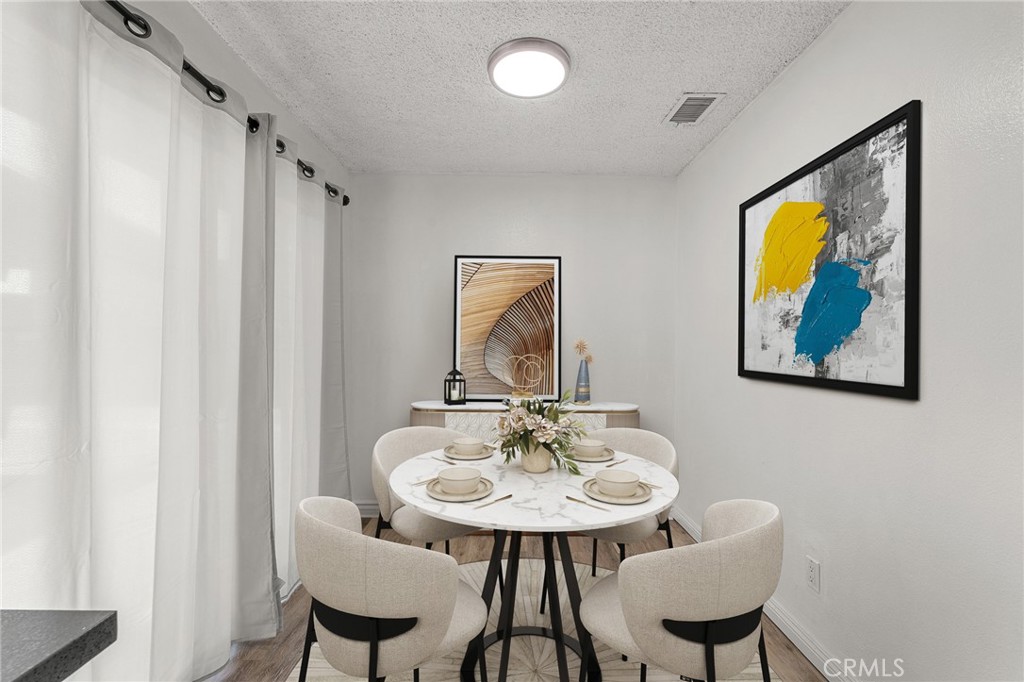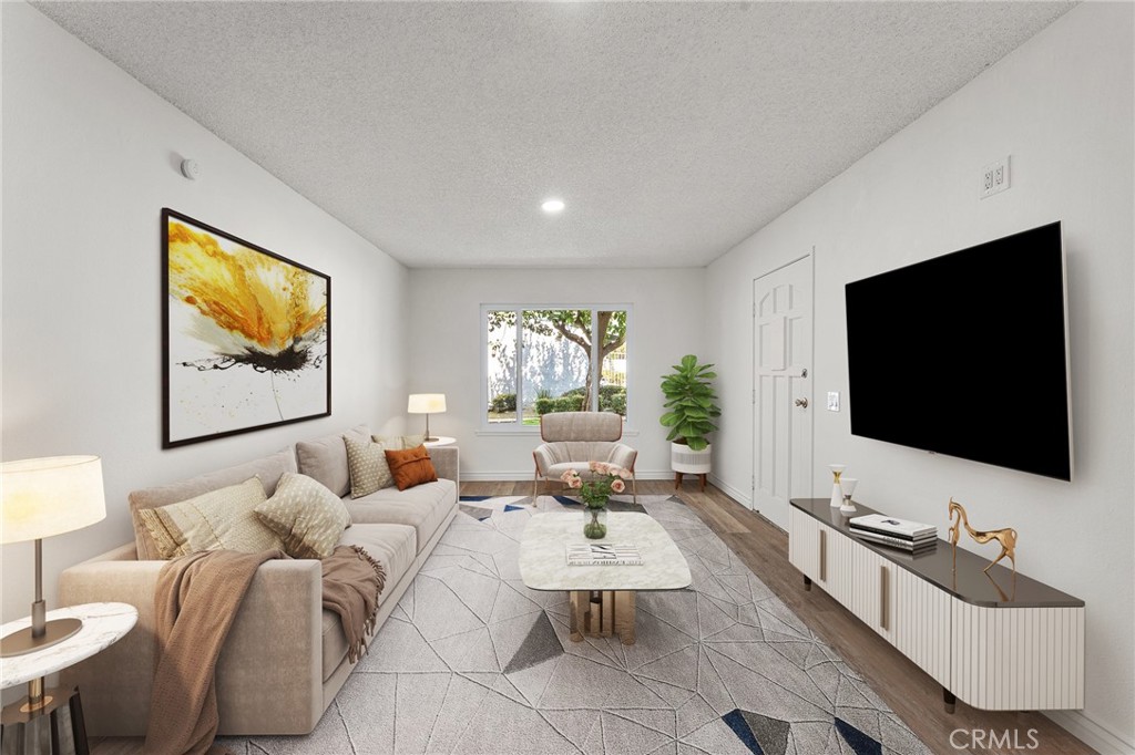 Beautifully updated 1-bedroom, 1-bathroom condo with a private patio, located close to the pool. Condo is an end unit with easy access to parking and covered parking. New kitchen with timeless white cabinets and quartz counter tops, plenty of storage cabinets and counter space, kitchen is open to the dining room with sliding glass door with natural lighting. New luxury vinyl plank flooring, updated bathroom, new windows, mirror closet doors. The thoughtful design includes a laundry area with washer/dryer hookups. Take advantage of the community’s amenities, including a pool and spa, offering a refreshing escape just steps away from home. The HOA fee covers water, trash, and sewer services, providing a hassle-free lifestyle. This updated condo is not just a residence; it’s an invitation to embrace modern living with style and convenience. Schedule a visit and experience the perfect blend of comfort and contemporary elegance. Call Today!