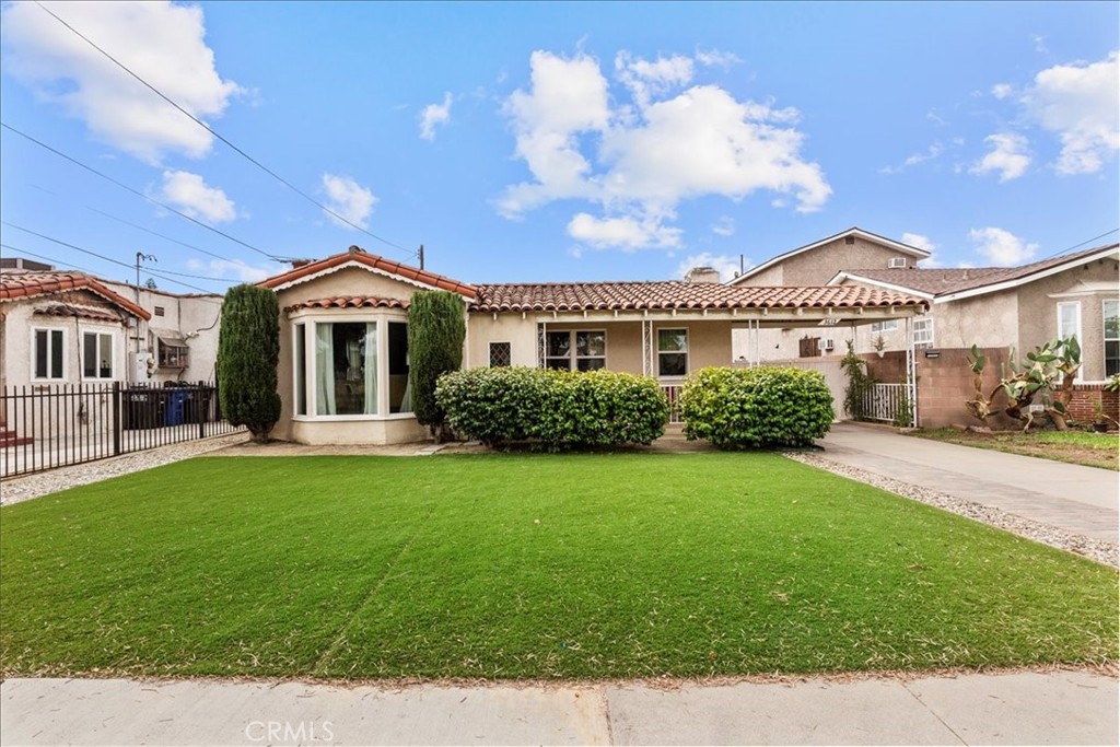 Welcome to this beautifully maintained single-story Spanish-style home featuring 2 bedrooms, 1 full bathroom, and 1,199 sq ft of living space. Nestled on a generous lot, this property offers incredible outdoor amenities including a lush grassy backyard with mature citrus trees—perfect for relaxing or entertaining—and an inviting front yard with well-manicured landscaping. The long gated driveway provides ample parking options, allowing vehicles to be secured behind the gate or conveniently in front. A detached two-car garage offers additional parking or storage flexibility. Inside, you’ll find a functional floor plan with abundant natural light and a new stove in the kitchen. Available for a December 1st move-in & located in a desirable neighborhood with easy access to local conveniences, this home is a rare lease opportunity combining comfort, privacy, and classic curb appeal.