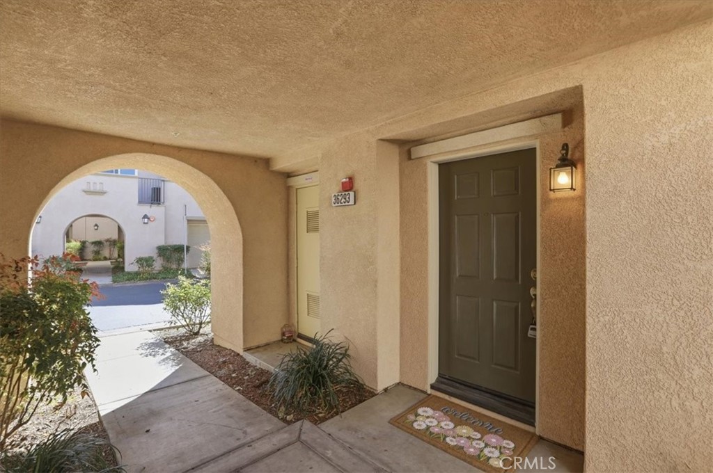 Located in the desirable Casabella community, this well-maintained 2-bedroom, 2-bath condo offers approximately 1,304 sq ft of living space and a spacious, open floor plan. Built in 2006, the home features a courtyard entry shared with neighboring residences, creating a welcoming approach to the front door. Inside, the open layout is enhanced by wood laminate flooring throughout with no carpet and neutral paint tones that create a bright and inviting atmosphere. The kitchen is well appointed with Corian countertops, tile backsplash, stainless steel appliances, and ample cabinet space, opening conveniently to the dining area and main living space—ideal for both everyday living and entertaining. The living room is accented by a cozy fireplace, adding warmth and character to the main living area. One of the standout features of the home is the two large balconies, including one off the dining area and a large private balcony off the primary bedroom, perfect for relaxing outdoors. Both bedrooms offer generous space and their own walk-in closets, with the primary suite also featuring a private full bathroom. Additional conveniences include an indoor laundry closet and a two-car attached garage, providing practicality and extra storage. Residents of Casabella enjoy community amenities including a pool and spa, playground, beautifully landscaped common areas, and security guard service. The community is adjacent to a large park and ideally located with easy access to shopping, restaurants, and nearby city amenities, making it an excellent opportunity for buyers seeking convenience in a well-maintained neighborhood. Great value in this attractive price range.