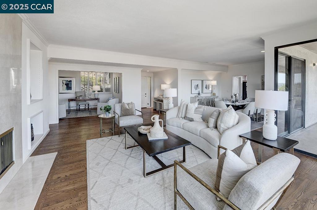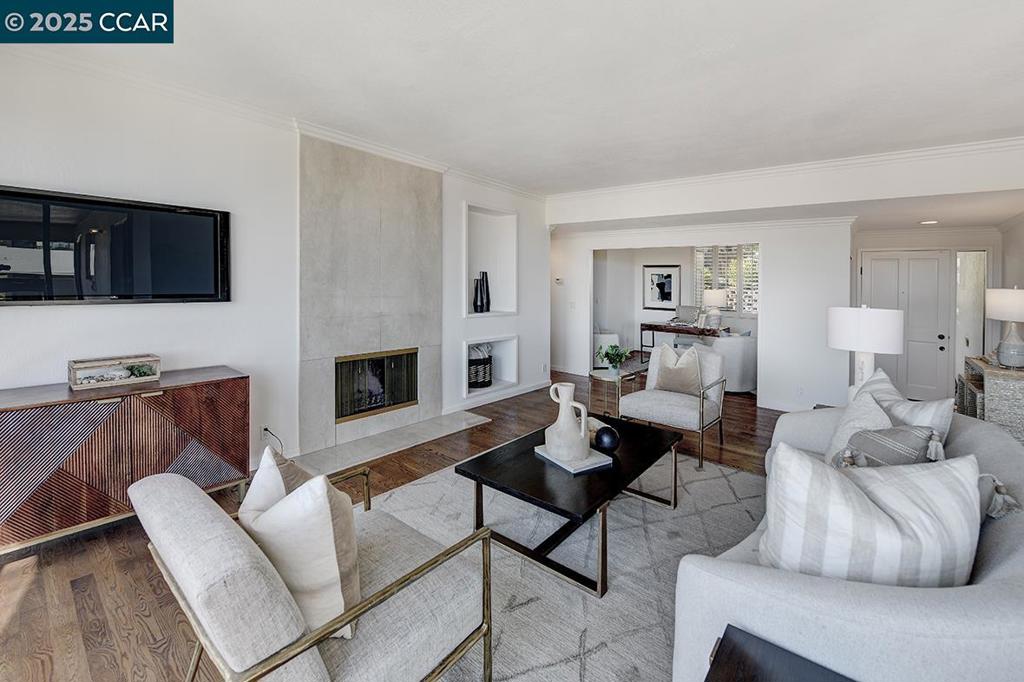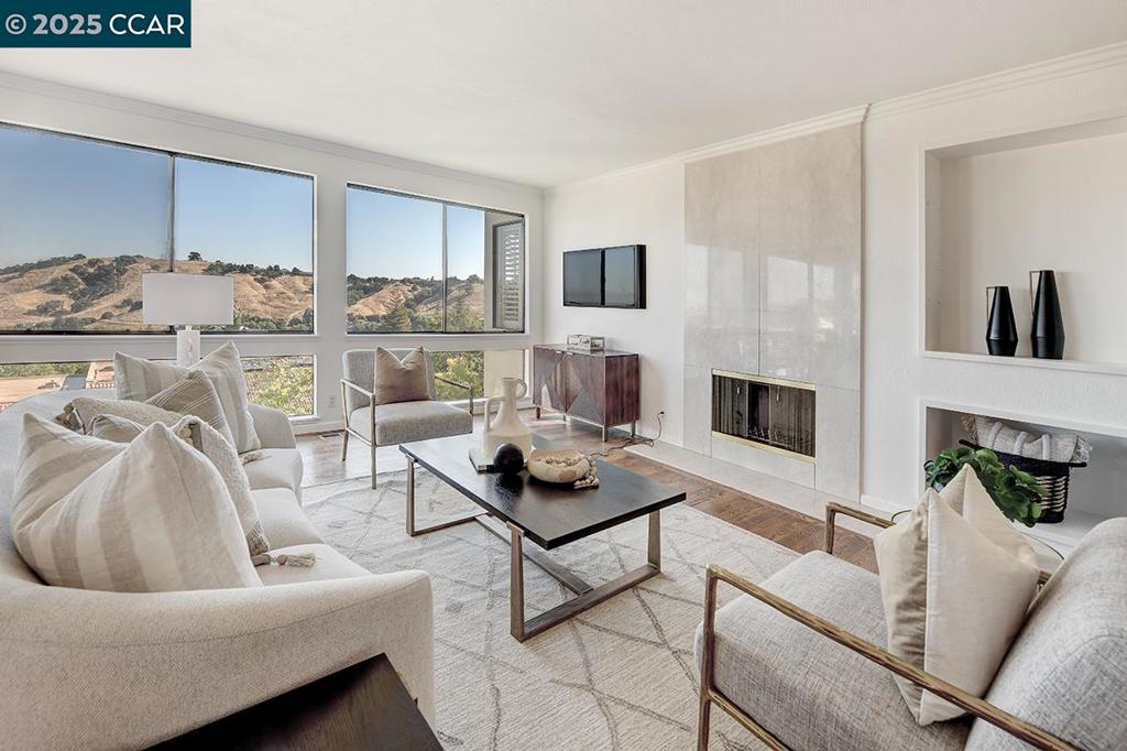 Welcome to this stunning home where panoramic views of Mt. Diablo steal the show—captivating by day and truly magical by night. Perched in a serene setting, this residence seamlessly blends natural beauty with modern convenience. Step inside to discover beautiful hard surface flooring, paired with sleek recessed lighting that adds warmth and sophistication to every room. The updated kitchen is a chef’s delight, featuring contemporary finishes, ample counter space, and a layout perfect for entertaining. Both bathrooms have been tastefully modernized, offering spa-like comfort with stylish fixtures and finishes. Each space in the home is designed with functionality and aesthetics in mind. Step outside to a large, spacious deck—ideal for relaxing, dining al fresco, or simply soaking in the sweeping views. Whether you’re enjoying morning coffee or hosting guests under the stars, the backdrop of Mt. Diablo never disappoints. Additional features include an attached garage providing convenience and extra storage. This home is a rare combination of scenic beauty, updated interiors, and practical amenities. Don’t miss the opportunity to make it yours!