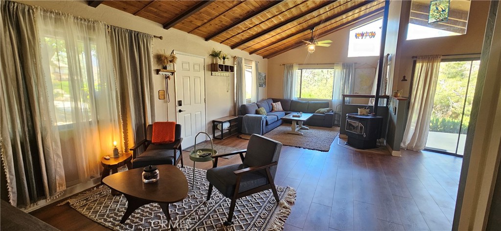 Move in ready home with breathtaking views surrounding the property! The home is welcoming, bright, and airy with view from every window. Enjoy outdoor living on the large deck with built-in BBQ, perfect for entertaining or relaxing in nature. Located minutes from the river and close to shops, restaurants, and markets. During seasonal months, a charming creek runs below the home, enhancing the peaceful setting. The home has many upgrades, including new flooring, walk in closet, pantry, and more with a cozy pellet stove for added charm. A rare opportunity to enjoy space, scenery, and convenience in the heart of Kernville.