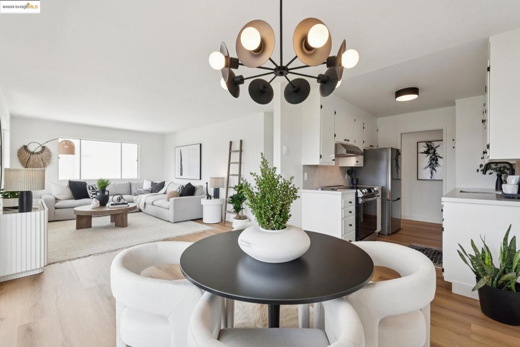 Stylish 2-bedroom, 2-bath condominium offering modern design and convenience while situated in the fabulous Grand Lake neighborhood. Inside your third-floor unit, you’ll enjoy 1133 square feet of comfortable living space with large windows, LVT flooring, and a neutral color palette for a welcoming ambiance. Adjacent to the seamlessly connected living and dining areas, large glass sliders open to a generous balcony perfect for relaxing or entertaining. The unit features a beautifully remodeled galley-style kitchen with quartz countertops, a stunning tile backsplash, a suite of stainless-steel appliances, and ample cabinetry. There are two full bedrooms for rest and relaxation, including a spacious primary suite with plenty of storage space and a gorgeous en suite, beautifully tiled and featuring a rainfall walk-in shower. The Harrison House offers interior access from the gated garage with dedicated parking and storage, plus a community laundry facility. Amazing location minutes from Piedmont Avenue’s shops and restaurants, the Morcom Rose Garden, and Lake Merritt, where you will enjoy the weekly farmer’s market. Easy access to I-580, I-980, Hwy 24, and the 19th Street BART Station with an 88 Walk Score®. Enjoy all the Bay Area has to offer.