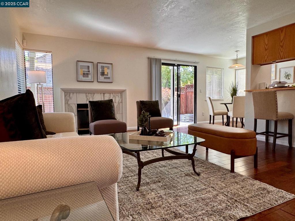 Darling 2-Bedroom/2-Bath End-Unit in Cobblestone. Welcome to this charming, level-in end-unit condominium located in the highly desirable gated Cobblestone community. This home offers a warm and inviting floor plan featuring rich engineered wood flooring, a spacious living room with direct access to a private patio, and a galley-style kitchen complete with a breakfast nook and convenient kitchen bar. Enjoy the ease of an attached garage plus an additional covered carport, providing plenty of parking options. The serene setting includes a beautiful greenbelt, while the recently renovated community pool and hot tub create a perfect retreat just steps from your door. With its combination of comfort, style, and amenities, this 2-bedroom, 2-bath home is an ideal opportunity in one of the area’s most sought-after neighborhoods.
