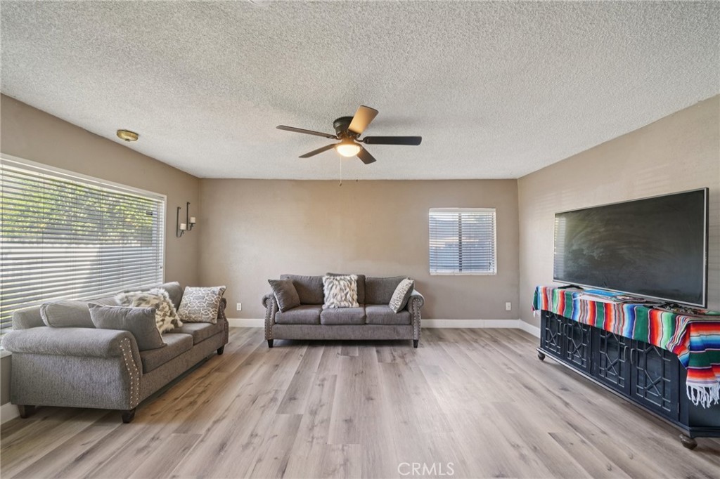 This beautifully maintained home offers efficiency for years to come with benefits including reliability, cost savings , and Peace of mind! Recent upgrades include a NEW water heater, NEW HVAC system, NEW Plumbing, NEW Electrical, NEW Insulation, and A remodeled bathroom. Meticulously maintained, this two-bedroom, one-bathroom home includes an optional 3RD BEDROOM being used as a laundry room- has great value! Featuring upgraded modern flooring, and new interior paint with light-catching windows throughout compliment the bright and open floor plan. The spacious remodeled kitchen features white cabinets, an extra-large dining area perfect for entertaining! Another bonus separate eating area with a door to the backyard. Within close proximity is the beautiful living room with breezy ceiling fan, media area. The Primary bedroom features a spacious closet, and hard flooring throughout. The secondary bedrooms are generously sized and offer ceiling fans, ample closet space and a shared hall bathroom. The hallway bathroom was remodeled with a spa shower, extra tall shower head, and spacious interior. Solar! The solar is leased with very low monthly payments. Relax in the 5,750 sq ft backyard, which includes a lemon tree, RV parking and detached garage. There is no HOA here and low taxes! Located near freeways, schools, dining and shopping, this home is an ideal choice for anyone looking for a meticulously maintained home.