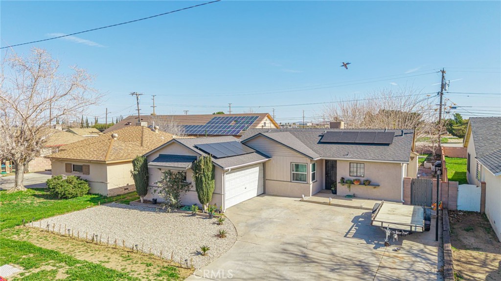Fully upgraded 3-bedroom, 2-bath home featuring a dining room and spacious family room. Big yard perfect for family gatherings with two storage shed to store all your necessities . The roof was completely replaced less than two years ago. Conveniently located just minutes from Antelope Valley College, Palmdale Academy Charter School, and Cactus Magnet Academy. The property includes solar panels and has no HOA.