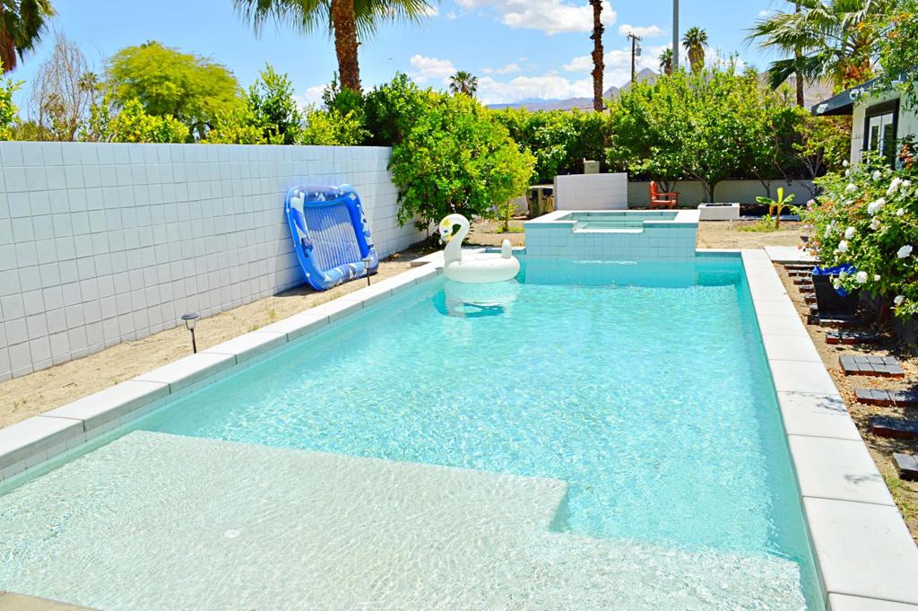 REDUCED PRICE — GREAT OPPORTUNITY! Demuth Park corner lot with mountain views. Current owners added GORGEOUS new pool and spa constructed in 2024! Lush landscaping includes several types of mature fruit trees. Solar lease. Home interior totally renovated in 2007. Living room boasts wood-burning brick fireplace with tile entry. Updated, expanded kitchen. Three bedrooms; two bathrooms. (Combined closet in primary bedroom can be easily re-divided.) Washer/dryer in home. One-car attached garage. Easy access to community center, golfing, tennis, pickleball, and elementary school. Oh, the possibilities …. Come check out this amazing opportunity!
