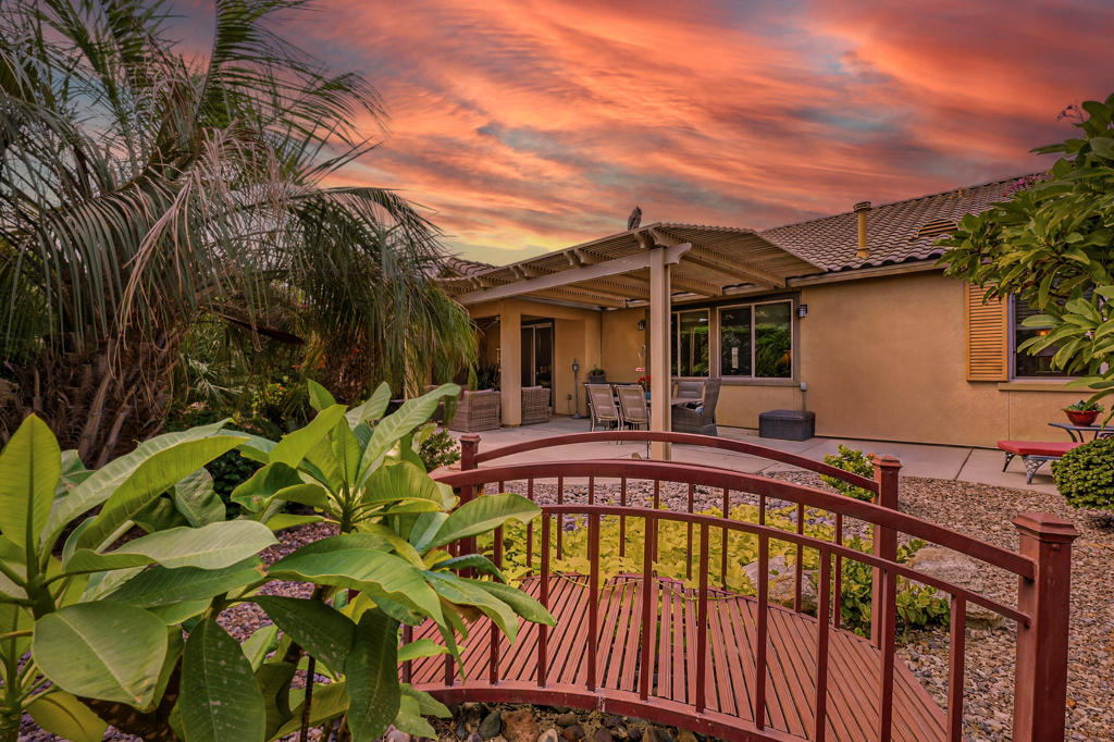 Step into the sought-after Merida floor plan, offering 2,370 sq. ft. of refined living in the premier 55+ active adult community of Sun City Shadow Hills. The chef’s kitchen is a true centerpiece, featuring rich wood cabinetry, granite countertops, black appliances, a generous walk-in pantry, and a central island with bar seating–perfect for both casual meals and entertaining. Flowing seamlessly into the expansive great room, the space is enhanced by a cozy fireplace and sliding glass doors that open to an extended covered patio. Outdoors, enjoy the peaceful backyard where a soothing water feature creates a private, tranquil retreat for dining, entertaining, or simply unwinding. Truly a ”secret garden” experience! The luxurious primary suite is designed for relaxation with plush carpeting, a spacious walk-in closet, and a spa-like bath with dual vanities and a walk-in shower. Two additional guest bedrooms provide comfort and flexibility, complemented by a full bath with a shower-over-tub combination. As a resident, you’ll enjoy a resort-style lifestyle with access to two championship golf courses, two clubhouses, sparkling pools, modern fitness centers, and an endless array of clubs, activities, and social events.