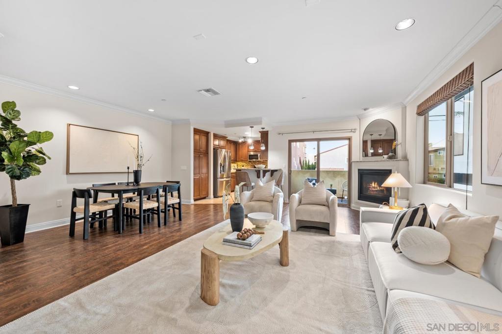 PRIVATE ROOFTOP DECK WITH A VIEW! An exceptional townhome in the coveted Crown Point enclave of Pacific Beach, showcasing sweeping bay & downtown views from a private rooftop deck perfect for taking in sunsets and coastal breezes. This highly upgraded, light-filled residence features an elegant, open-concept design that seamlessly blends style and comfort. A meticulous attention to detail featuring: wide plank flooring, recessed lighting, crown molding & baseboards, rich wood cabinetry, glass tile backsplash and balcony access directly off of the spacious living space. Offering the perfect blend of coastal living and everyday convenience with effortless access to Mission Bay, scenic waterfront paths, and the finest dining and lifestyle amenities Pacific Beach has to offer. A rare opportunity to own a thoughtfully curated bay-view home in one of San Diego’s most sought-after coastal neighborhoods. Crown Point’s relaxed community vibe, parks and easy access to freeways make this an exceptional place to call home—whether you’re seeking a primary residence, vacation retreat, or investment opportunity.