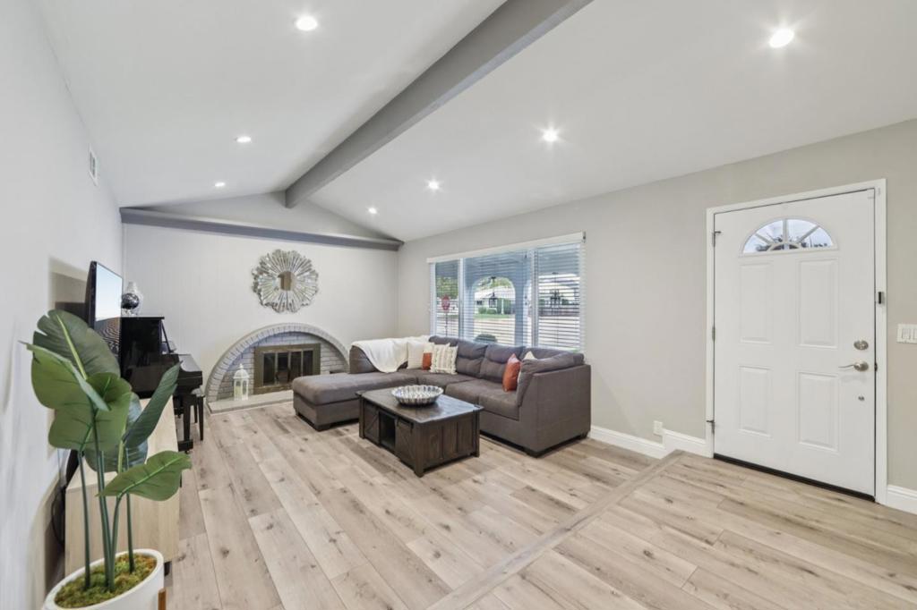 Welcome to North Facing single family home in Blossom Valley* Bright open floor plan with beautiful Luxury Vinyl Plank flooring throughout* Step down living room with fireplace* Remodeled kitchen with white cabinetry, stainless steel appliances and Quartz countertops* Bright installed recessed lighting in kitchen, living room and hallway*Central heating and A/C with Smart thermostat *Updated bathrooms*Dual pane windows throughout*Two car attached garage with EV charger for electric cars* Solar paid off* The huge yard includes a covered patio that extends to a large back and side yard, complimented by a tree-lined front yard and porch! In addition, this home sits within a fabulous neighborhood of prideful ownership conveniently located near many commute access points including highways 85, 87, Monterey, Capitol, Branham and the VTA light rail.