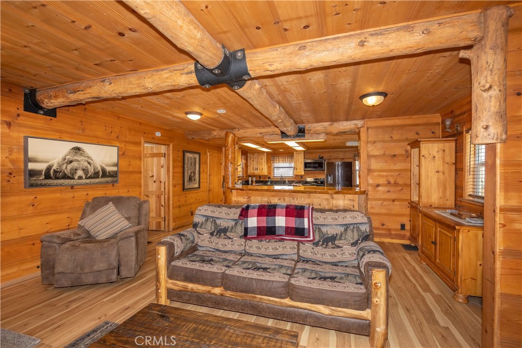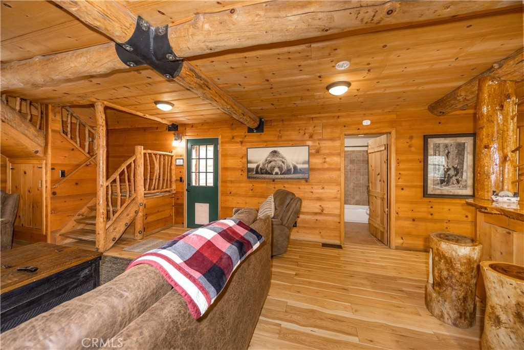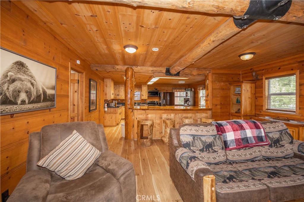 This 1,272 sqft full log-sided cabin beautifully blends rustic charm with modern conveniences, creating the perfect Big Bear getaway or investment. Thoughtfully updated, it features new flooring, stainless steel appliances, granite kitchen countertops, dual-pane windows, and central A/C for comfort year-round. The warm cabin décor enhances every room, including a spacious loft bedroom with closets that flows into the main bedroom, adding both character and functionality. Situated on a generous 7,777 sqft level lot, the property offers a newly fenced backyard for privacy, a storage shed, and plenty of outdoor space to relax or entertain. The inviting front porch is ideal for morning coffee, while the home’s location on a quiet street provides peace and seclusion. Just a short walk to the lake and Holloway’s Marina, and only minutes from the Village, hiking, biking, and ski slopes, this fully furnished retreat is move-in ready and captures the essence of Big Bear living.