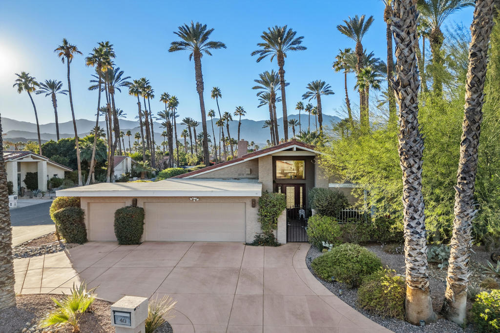 Nestled at the intersection of Gerald Ford Dr and Mission Hills Dr in Rancho Mirage, CA, Presidential Estates offers a prime location directly opposite Mission Hills Country Club. This luxurious gated community showcases 52 Mediterranean-style homes, each boasting breathtaking views of the Santa Rosa and San Jacinto Mountains and meticulously landscaped yards. Residents enjoy the community’s charming pool/spa area and tennis courts, and RV Parking adding to the allure of this prestigious enclave. This Presidential Estates home offers an amazing outdoor living oasis with stunning panoramic mountain views, large pool/spa with waterfall on a very desirable corner lot with circular driveway. This home has 3 bed’s 2 1/2 bath’s with over 2,500 sq ft. Entering the home brings you to the living room with vaulted ceiling and fireplace. Living areas and primary bedroom open up to the outside providing perfect indoor/outdoor desert living. The home also offers a formal dining room, wet bar, an updated kitchen with a large island w/breakfast counter, stainless steel appliances including a beverage center, an beautiful atrium, laundry room plus a 2-car plus golf cart garage. Some of the most recent upgrades include windows and sliding doors throughout in 2020 as well as, the AC system in 2022. This large floor plan and beautiful outdoor living space create and entertainer’s delight. Don’t miss out on this home!