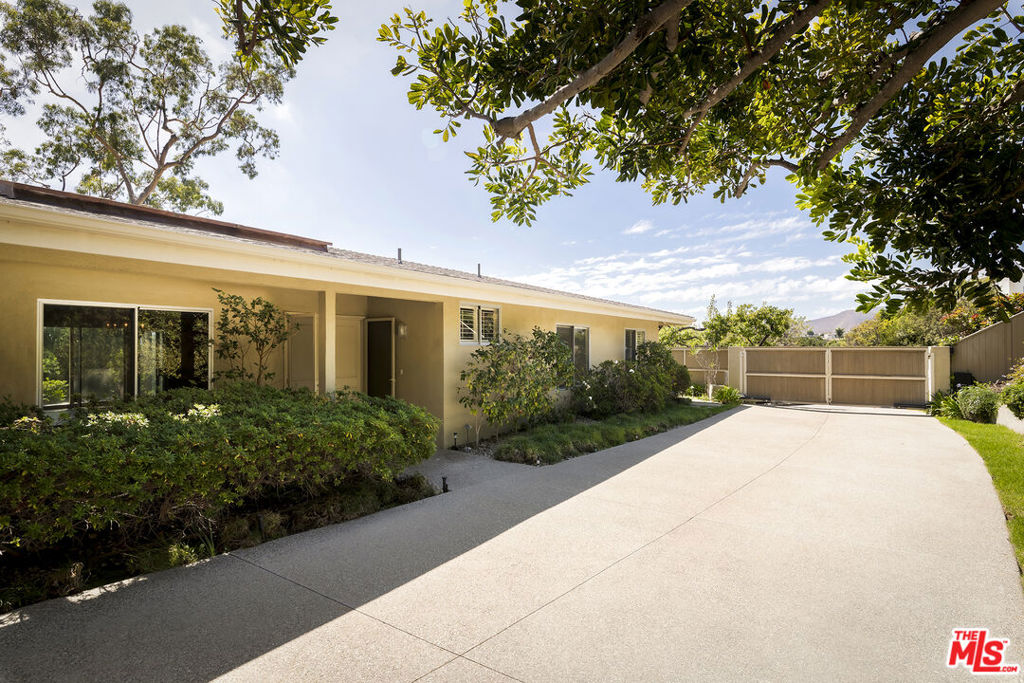 Perched above the Getty Villa on a private 16,483 sq ft lot, this fully gated single-story residence captures both ocean and mountain views while offering unmatched privacy and charm. The 2,556 sq ft home features 3 bedrooms and 3 bathrooms, blending midcentury character with warm natural light throughout. Inside, floor-to-ceiling sliding doors and a sun room create bright, airy living spaces anchored by two fireplaces and a built-in alcove bench with shelving. The kitchen showcases original midcentury wood cabinetry with ample storage and counter space. The primary suite offers a generous walk-in closet and ensuite bath with both shower and tub. Outdoor living is seamlessly integrated with multiple points of access to a covered side patio, a pergola for shaded lounging, and a flat grassy pad framed by lush landscaping. Mountains rise behind while ocean views extend ahead, creating a tranquil coastal setting untouched by recent fires. A two-car garage, ample driveway parking, and a Generac 16,000-watt whole house generator provide both convenience and peace of mind. With direct access to scenic hiking trails and just moments from Palisades Village and the beach, 400 Surfview Dr offers a rare opportunity to enjoy hillside serenity in a premier coastal location.