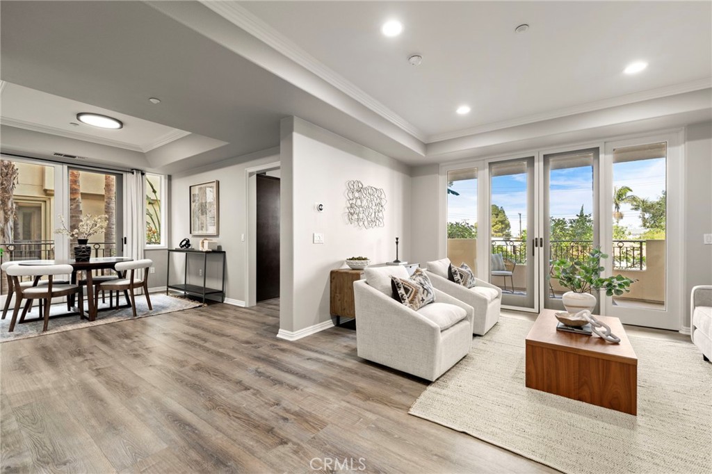 Welcome to Luxury Living in Costa Mesa! Step inside this beautifully remodeled 2-bedroom, 2.5-bathroom condo with a versatile loft, offering 1,755 sq ft of stylish living space. Walking in, you’re greeted by a spacious living room that flows seamlessly to a private balcony—perfect for relaxing or entertaining. The updated kitchen features built-in upgrades, including a Sub-Zero refrigerator, and opens to the dining area with high ceilings and a second balcony that brings in an abundance of natural light. Downstairs, discover a flexible loft area ideal for a home office, gym, or second living space. The generous guest bedroom includes mirrored closet doors, while the primary suite features dual closets—one walk-in and one standard—along with a spa-like bathroom offering dual sinks, a soaking tub, stand-up shower, and private toilet room. This move-in ready home includes brand-new laminate flooring, fresh paint, a new water heater, and an updated HVAC system for year-round comfort. Additional highlights include a 2-car garage and a secure, well-maintained community. Enjoy resort-style amenities including a pool and beautifully landscaped grounds—all just minutes from Triangle Square, Newport Beach, shopping, dining, entertainment, and most importantly—the beach! Don’t miss your chance to make this stunning Costa Mesa condo your own!