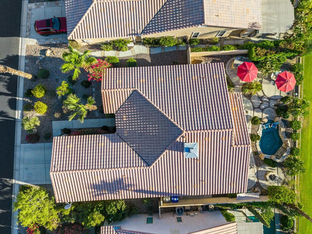 Incredible Views | Resort-Style Backyard | Designer Upgrades Throughout |Enjoy spectacular, panoramic GOLF COURSE, LAKE, and MOUNTAIN VIEWS from this beautifully maintained and HIGHLY UPGRADED home in Sun City Shadow Hills, Del Webb’s premier guard-gated 55+ community near Palm Springs.This popular AVALINO floor plan boasts 2BRs+DEN and has an OPEN-CONCEPT layout with easy flow from indoor to outdoor spaces, ideal when entertaining family and friends. Additionally, both bedroom suites are nicely separated for privacy. The stylish and fully REMODELED CHEF’S KITCHEN features Quartz counters, a wraparound breakfast bar, Bosch double ovens, and ample storage. This home has been thoughtfully upgraded with designer touches throughout…a LEADED GLASS entry door, custom window treatments and a sophisticated yet cozy GAS FIREPLACE for added warmth and ambiance on cooler winter evenings. The primary suite includes a SPA-LIKE BATH with Quartz countertops, custom backsplash, walk-in shower, motion lighting, and smart storage. Additional upgrades include new carpet (w/lifetime warranty), a tankless water heater, Honeywell smart thermostat, and EPOXY-COATED GARAGE FLOOR with mini-split A/C. The backyard is a true showstopper–set on the 5th Fairway and featuring a CUSTOM ROCK WATERFALL SPOOL with color-changing lights, a gas firepit, built-in BBQ with mini fridge, herb gardens, and a new wrought-iron perimeter fence. Community amenities include golf, tennis, pools/spas, fitness centers, clubs, activities, and low HOA dues that cover internet, security, & clubhouse access. Schedule your showing today!