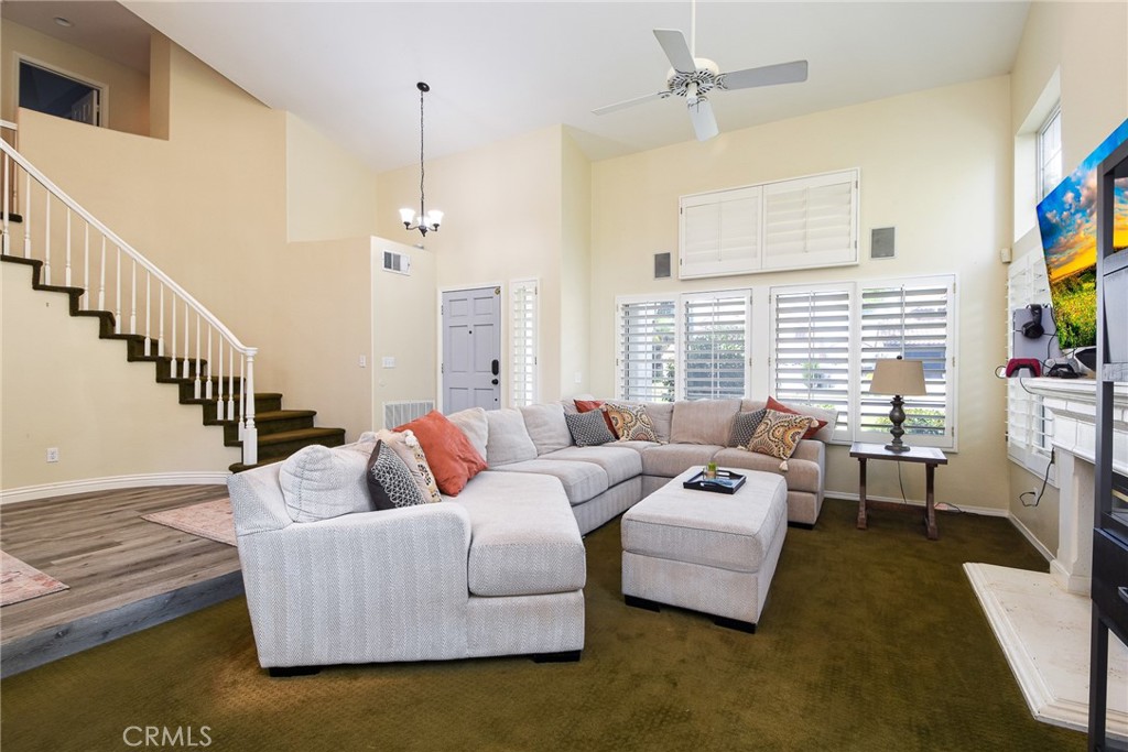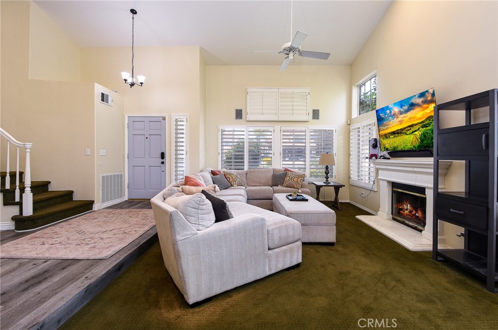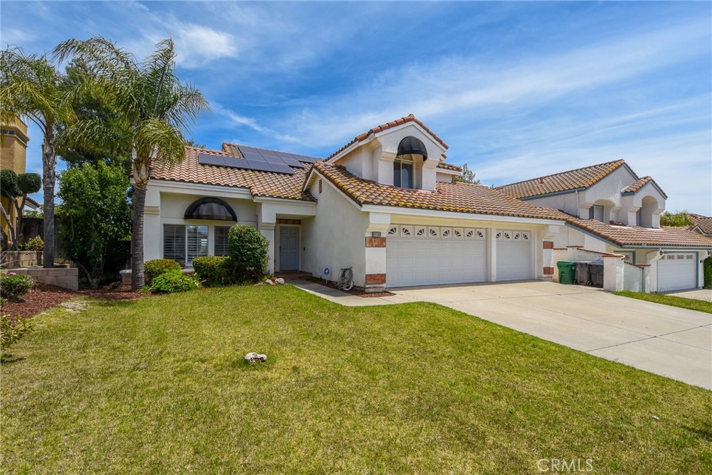 This is an exceptional find located in Murrieta, welcome to this stunning 4-bedroom, 3-bathroom home. As you enter the home you are greeted with wide open floor plan and high ceilings, laminate flooring and carpet. The living room and dining room offer large picture windows which bring in a lot of natural light. There is also a gas fireplace for that touch of warmth and elegance. The chef’s kitchen is a true highlight with new laminate flooring, quartz counter tops and matching stainless steel appliances. There is a large center island, gas burner cooktop, oven and microwave and plenty of cabinet space for all of your culinary needs. The kitchen flows into the cozy family room with eating area and the second gas fireplace creating an intimate space for meals. This home also features a bedroom downstairs and full bath, in addition to a separate laundry room with ample storage space and room for your organizational needs. Upstairs you will find the primary bedroom and bath is tucked away on one side of the home for maximum peace and quiet. The en-suite bathroom has been remodeled with large bathtub and separate shower. The doors open up to a private balcony right off your primary bedroom where you can take in the panoramic views. Down the hall holds two additional bedrooms with a shared jack and Jill full bathroom. The view from backyard is stunning with a view of the canyons. In addition, this home has leased solar with very low payments per month. The home is located within short driving to Temecula wine country and easy access to the 15 and 215 Freeways. Don’t miss seeing this home