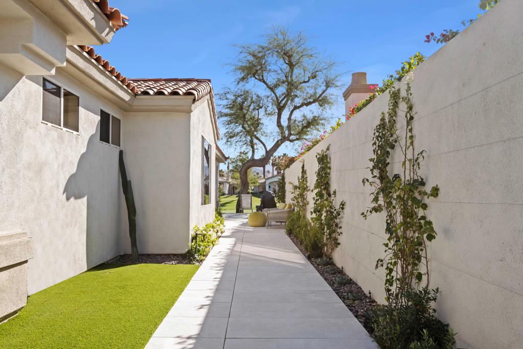 Available April 15, 2026 – December 15, 2026, dates flexible. Contact agent to inquire on 2026-2027 seasonal lease rates. Welcome to this beautifully remodeled and uniquely expanded Acacia 4, boasting over 2200sf with 3 bedrooms and 3.5 bathrooms. The home has been meticulously renovated with the highest quality products and furnishings for the finest in desert living. You will enjoy the fully tiled interior and exterior south facing patio with built-in gas firepit and beautiful outdoor landscape and lighting. One guest bedroom features double queen America leather system built in sleepers as well as a beautiful home-office/entertainment system. Both the master and 2nd guest bedroom enjoy king beds and all bedrooms enjoy ensuite remodeled baths. The home is equipped with new TVs, contemporary glass skylights, electric fireplace, HVAC systems are energy efficient heat pumps plus gas tankless water heater, and so much more. Located across the street from the neighborhood pool and hot tubs and walkable to fitness center, club house and tennis/ Pickleball courts with the option for tenant to pay for use of owner’s membership with 3 month minimum rental and membership approval. Use of Owners golf cart is permitted with appropriate waiver and hold harmless.