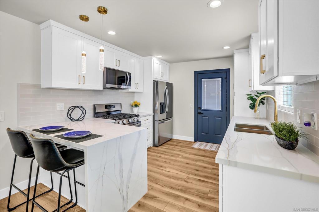 ***This NORTH PARK Modern Spanish Home has been COMPLETELY REMODELED like a BRAND-NEW HOME!*** This property includes a New Roof; New Stucco; New Windows & Doors; New Laminate Flooring; New Mini-Split HVAC System (AC & Heater); New Electrical, Plumbing & ABS Sewer Systems; New Drywall & Texture; New Interior Paint; New Concrete Driveway & Patio, New Water Heater; and SO MUCH MORE!! Including a COMPLETELY REMODELED KITCHEN & BATHROOM, which includes a Walk-In Shower with Designer Tile. The Designer Kitchen has been completely updated with all New Cabinets, including a Pantry, New Quartz Countertops with a Quartz Waterfall Peninsula, New Smart Energy Efficient Stainless-Steel Appliances (French Door Refrigerator, Self-Cleaning Range with a Convection Oven, Dishwasher & Microwave), and New Tiled Backsplash. The Designer Kitchen has been completely updated with all New Cabinets, including a Pantry, Quartz Countertops with a Quartz Waterfall Peninsula, Smart Energy Efficient Stainless-Steel Appliances (French Door Refrigerator, Self-Cleaning Range with a Convection Oven, Dishwasher & Microwave), Tiled Backsplash, Faucet, Deep Sink, and a Waste Disposal. The Laundry Room is inside the home with room for a stackable Washer & Dryer. ADDITIONAL UPGRADES include the following NEW items: Doors (exterior & interior), Garage Door with Opener, Insulation (exterior walls & attic), LED Lighting Fixtures (exterior & Interior), Recessed Lighting in the Kitchen, Living Room, Bathroom & Hallway, Ceiling Fans in the Bedrooms, and a Vanity with Faucet, Mirror & Toilet in the completely remodeled Bathroom, which includes a Walk-In Shower with Designer Tile. Landscaped Front Yard with drought tolerant landscaping. Fully Fenced Back Yard. Lots of Parking in the New Concrete Driveway, including a New Concrete Patio on the Back Yard. The Home is in the perfect location to walk to Restaurants, Shopping, and all that North Park has to offer! Please note that the Staging Furniture located in the kitchen, dining room, living room, bedrooms, and bath is not included in the sale of the property.