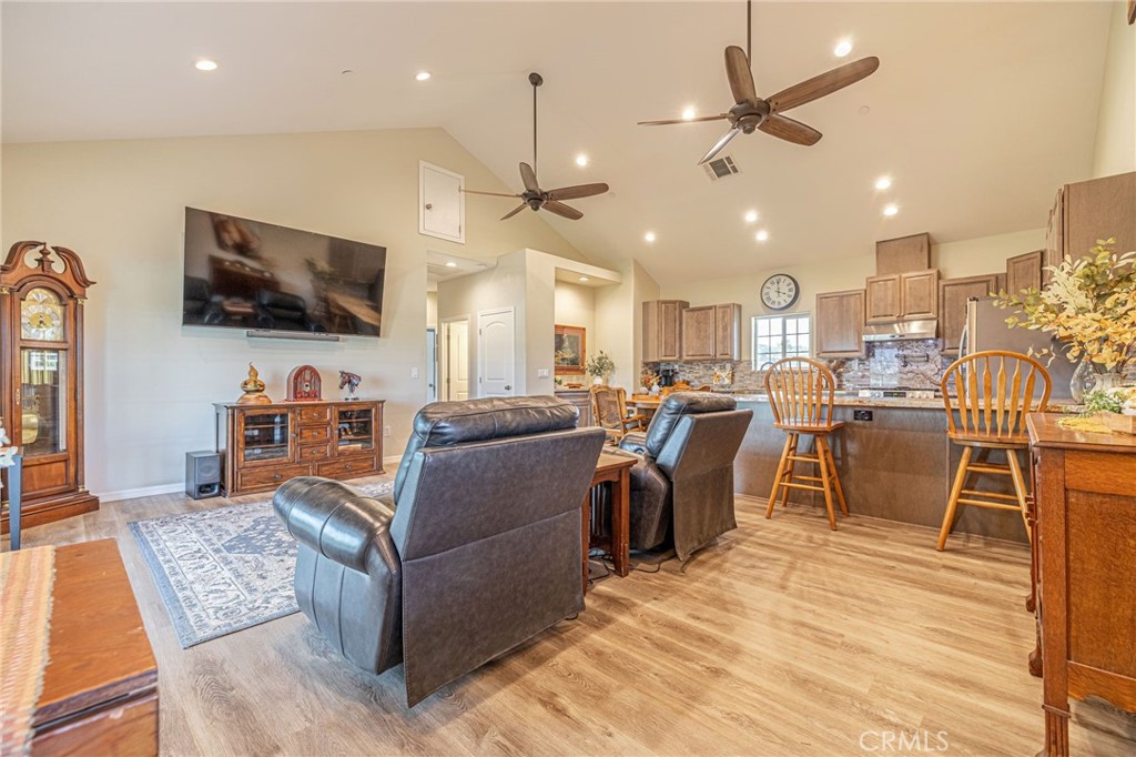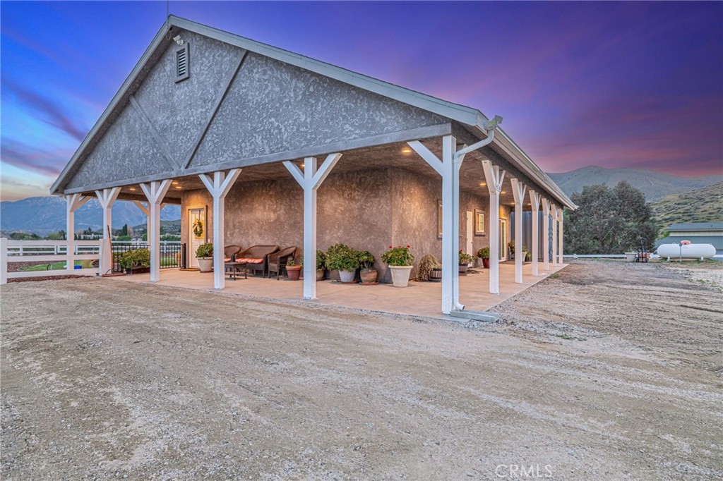 Welcome to your private country retreat showcasing stunning mountain views and tranquil surroundings. This newly built, meticulously maintained single-story home offers the ideal combination of rural charm and modern convenience. A welcoming wraparound covered porch creates the perfect setting for morning coffee or relaxing sunset evenings. Inside, the open-concept floor plan features soaring ceilings, recessed lighting, and wide-plank laminate flooring throughout, creating a bright and cohesive living space. The spacious kitchen is designed for both everyday living and entertaining, complete with rich wood cabinetry, granite countertops, stainless steel appliances, a custom tile backsplash, and a large peninsula with bar seating. The adjoining dining area is filled with natural light, making it ideal for gatherings. The generously sized primary suite offers peaceful outdoor views and private patio access, creating a light and serene retreat. An additional well-proportioned bedroom provides flexibility for guests, a home office, or hobby space. Step outside to enjoy fenced areas and usable land with endless possibilities—bring your animals, RV, and recreational toys, or design your dream outdoor oasis. A convenient dog washing station adds a thoughtful touch for your furry companions. Enjoy the privacy of country living while remaining just a short drive from town amenities. Move-in ready with scenic views, modern finishes, and room to grow—this is the one you’ve been waiting for. Plans available for a 728 sq. ft. ADU, offering a great opportunity to add additional living space or rental income potential.