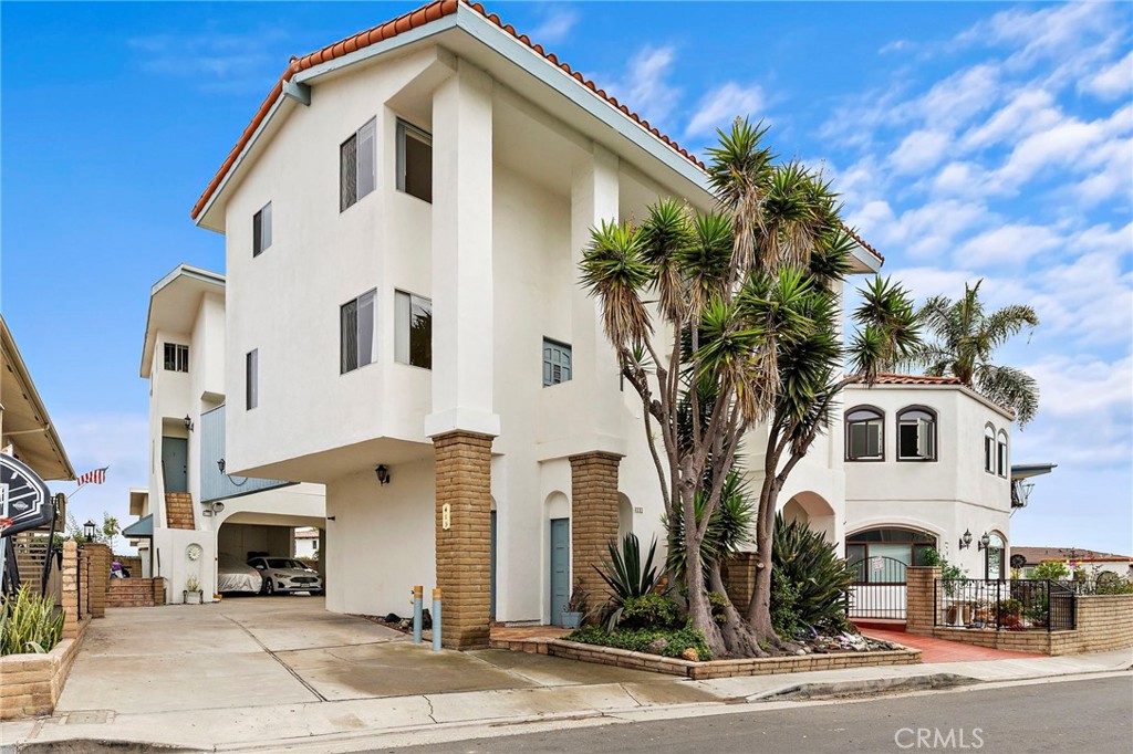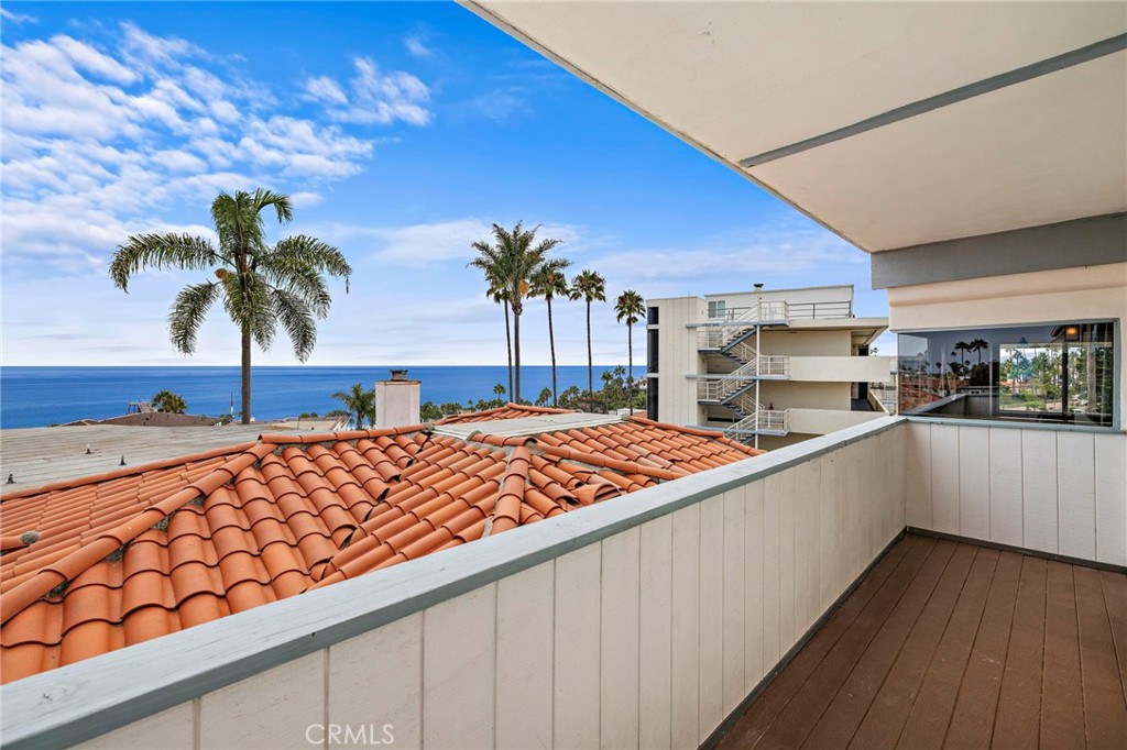 Enjoy beautiful Ocean Views from this light and bright two story condo located near San Clemente Pier! Brand new wood flooring throughout! All new fresh paint! Entry level has large bedroom with spacious closet and one full bath with glass enclosed shower over tub. There is a laundry area with washer/dryer hook ups. Upstairs has an open floor plan with kitchen open to living room with tiled fireplace. Kitchen is fully equipped with stove, dishwasher, microwave and refrigerator. Large Ocean View deck stretches across the entire living room and offers gorgeous views! One spacious bedroom with ample closet space with adjacent bathroom with glass enclosed walk in shower. There is another ocean view bedroom that can also be used as office or nursery. Two reserved carport spaces. Walk to the beach, train stop, restaurants, and shops from this central San Clemente location!