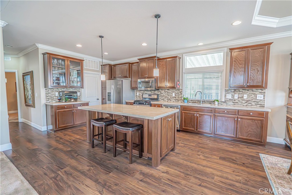Situated in the desirable gated community of Vista Del Monte in Monrovia, this inviting 55+ home offers comfort, charm, and convenience in a peaceful setting. The spacious wraparound deck is perfect for relaxing outdoors or entertaining guests, while the kitchen features sleek stainless steel appliances that add a touch of modern style and functionality. This home features 2 large bedrooms and a bonus room that can be perfect for a den, craft room or maybe even a 3rd bedroom. Large windows fill the home with natural light, creating a warm and welcoming atmosphere throughout. Residents enjoy access to a sparkling community pool, soothing spa, and a beautifully maintained clubhouse ideal for social gatherings and events. With water and trash included in the land lease, this home provides ease of living and low-maintenance comfort in a friendly senior community designed for relaxation and connection.