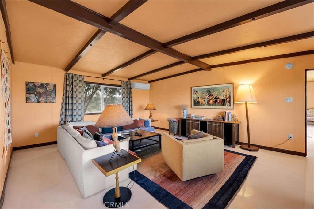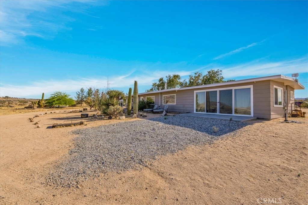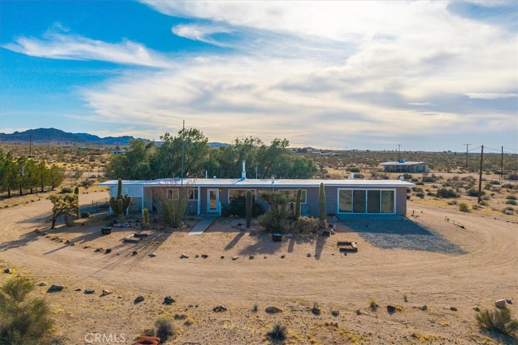 Discover the perfect blend of mid-century style and modern desert living in this beautifully updated 3-bedroom, 2-bath retreat. Set in a serene and scenic location near Goat Mountain and the iconic Integratron, this stylish home offers comfort, character, and incredible natural surroundings. Inside, you’ll find a stunning kitchen featuring butcherblock countertops, custom cabinetry, and newer top-of-the-line appliances—ideal for both everyday living and entertaining. White epoxy floors flow seamlessly throughout the home, complemented by large dual-pane picture windows that flood the space with natural light and frame the surrounding desert landscape. The nicely appointed primary suite offers a peaceful escape with beautifully finished natural wood ceilings, a luxurious spa-like ensuite bath, and breathtaking sliding glass doors that open to sweeping desert views. Two additional guest bedrooms share an updated full bathroom, offering comfort and privacy for visitors. Thoughtfully furnished and tastefully decorated, many of the furnishings may stay—making this an effortless transition into your new space! Step outside to your own 5 acre desert oasis, of which 2.5 acres are fully fenced with a convenient automatic gate, complete with a relaxing hot tub and a mature cactus garden. The West side of the home is cooled by the shady tamarisk trees. while several mature pine trees offer privacy on the South. Whether you’re soaking in the spa, lounging under the stars, or enjoying the peaceful surroundings, this home invites you to slow down and savor desert life. Tucked away and full of potential, the cozy shed offers the perfect escape for work or creativity. With electricity already in place, it’s move-in ready as a quiet home office, inspiring art studio, writing retreat, or hobby space. Enjoy the peace and privacy you need to focus, all just steps from home. Whether you’re painting, Zooming, or simply daydreaming, this little gem is ready to support your next big idea. Whether you’re a first-time buyer, downsizing, or seeking a turn-key investment, this property checks all the boxes. Even better, the owner is open to seller financing, offering flexible terms to help make homeownership more accessible. Located just minutes from Joshua Tree National Park, Pappy & Harriet’s, La Copine, and all the best of the Morongo Basin, this home is a rare find—ideal as a full-time residence, weekend getaway, or stylish vacation rental.