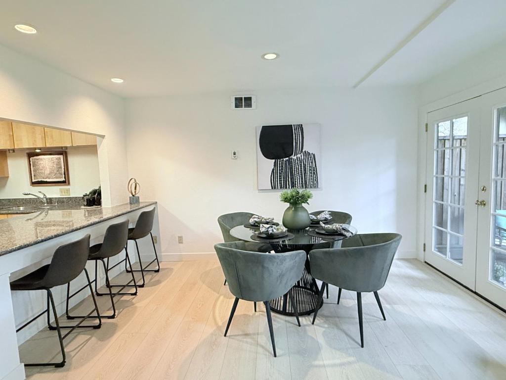 Welcome to this charming 2-bedroom, 2-bathroom home nestled in the heart of Mountain View. Boasting 1,300 square feet of living space, this residence is perfect for comfortable living. The kitchen is a highlight with a convenient breakfast bar and a dining area in the living room, ideal for casual meals and entertaining. The kitchen/family room combo is perfect for family gatherings and cozy nights in. Additional amenities include a fireplace that adds warmth and ambiance to the living area, and heating across two or more zones ensures comfort throughout the year. The home features a practical laundry area, enhancing convenience for daily chores. The property provides ample parking with two garage spaces. Located within the Mountain View Whisman Elementary School District, this home offers access to local educational facilities. Experience the best of Mountain View living in this well-appointed home, combining comfort and practicality in a desirable location.
