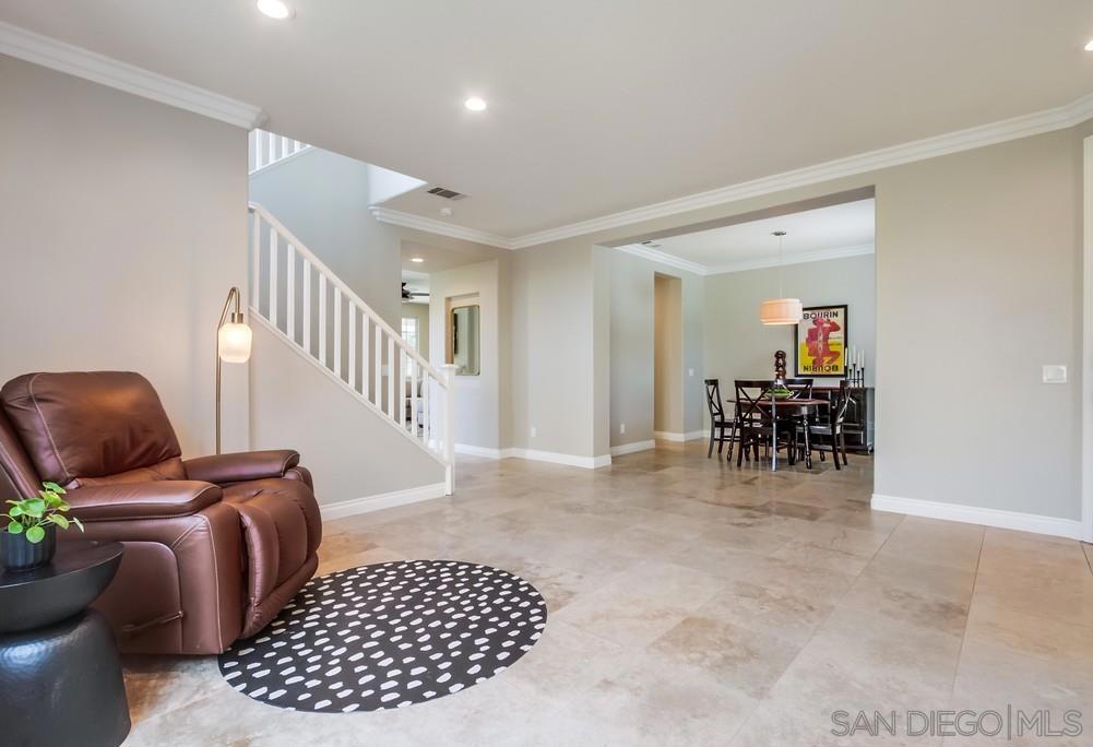 Welcome to 425 Camino Hermoso – Beautiful 4BR/3.5BA home in the gated Belleza community. Bright open floor plan with tile flooring downstairs and hardwood upstairs. The living area features recessed lighting and a cozy fireplace, flowing seamlessly into the dining area and modern kitchen with stainless steel appliances, granite counters, a large center island, and ample cabinetry. The primary suite offers a walk-in closet and ensuite with dual sinks, a soaking tub, and a separate shower. An optional second primary suite (currently used as a spacious bonus room) includes its own ensuite bath—perfect for guests or extended family. Two additional bedrooms share a full hall bath. Enjoy the private backyard with a paved patio, lush landscaping, and no rear neighbors. Additional highlights include solar panels, central A/C, upstairs laundry, and a 2-car garage. Low HOA dues and a prime location close to top-rated schools, parks, trails, and CSUSM.