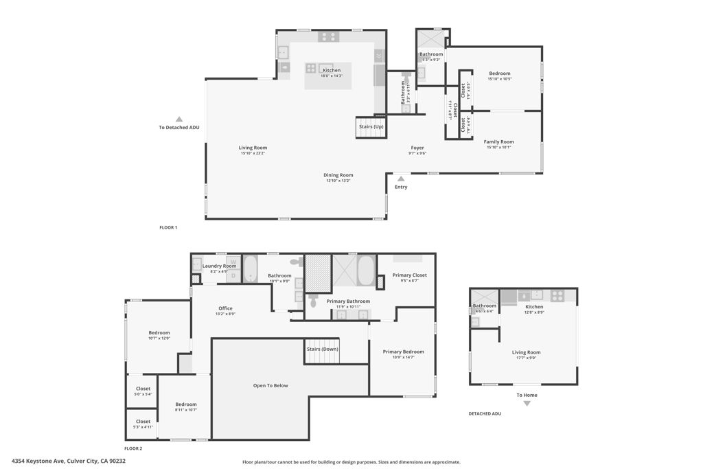Exceptional custom modern home in the heart of Carlson Park, Culver City. Built from the ground up, this residence offers 4 bedrooms, 3.5 bathrooms, plus a separate 360-sq-ft guest unit/ADU with its own entrance, totaling approximately 4,100 sq ft. High ceilings, recessed lighting, and extra-wide plank hardwood floors create a bright, refined interior. The open chef’s kitchen features Sub-Zero and Wolf appliances, Moroccan tile, and flows seamlessly into a sun-filled dining area ideal for entertaining. Smart and energy-efficient features include central air and heat, built-in ceiling speakers, Lutron lighting, privacy window tinting, whole-house water filtration, and an electric car charger. The guest unit is perfect as a home office or in-law suite, complete with a full kitchen and bathroom overlooking a private side patio. The serene backyard offers meyer lemon and orange trees, a 30-foot golf putting green, and a spacious shaded side yard. Located near the award-winning Farragut Elementary, Culver City Middle and High School, Carlson Park, and vibrant Downtown Culver City.