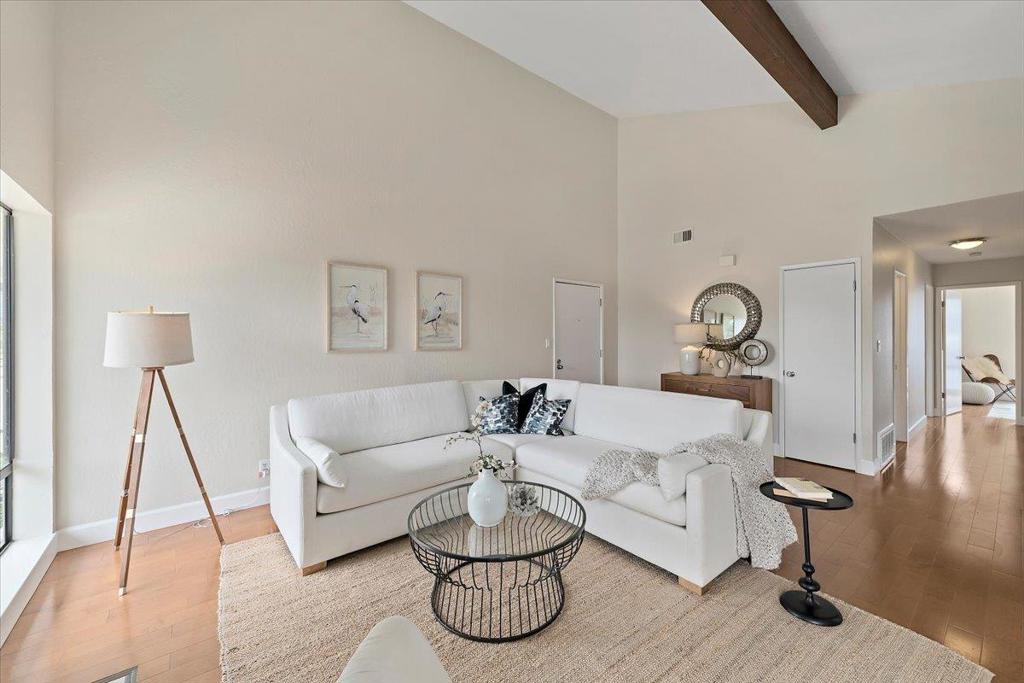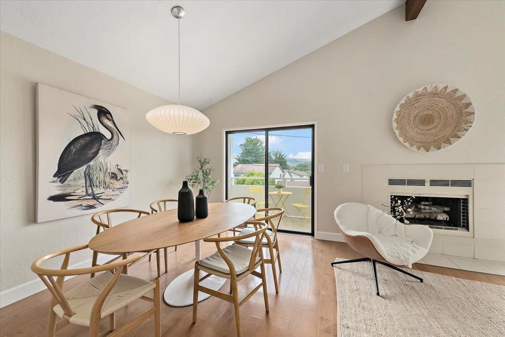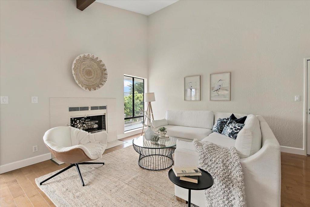 Welcome to this charming 2-bedroom, 2-bathroom home right in the heart of picturesque Half Moon Bay. With 1,028 sq ft of spacious living space, this residence offers a cozy and inviting atmosphere. The kitchen is well-equipped, featuring abundant granite countertops, dishwasher, french door fridge, lots of storage and a large pantry making it perfect for culinary enthusiasts. The open plan living room, with its soaring open beam ceiling and wood flooring, provides a warm and stylish setting, enhanced by a welcoming fireplace. The generous dining space easily accommodates a large table ideal for entertainers. Both bathrooms have been attractively remodeled featuring modern vanities and Toto toilets. Convenient amenities include a large indoor laundry with abundant built in storage, and 2 dedicated spaces in the secured underground parking garage with ample room for extra storage. The shared common area is directly accessed from the unit via the rear deck and there’s also a private deck out front ideal for morning coffee or an evening beverage while enjoying the sunset. Enjoy easy access to the beach and the natural beauty of the coast or take the short trail directly into downtown. This home is a delightful blend of comfort and functionality, ready for you to make it your own.