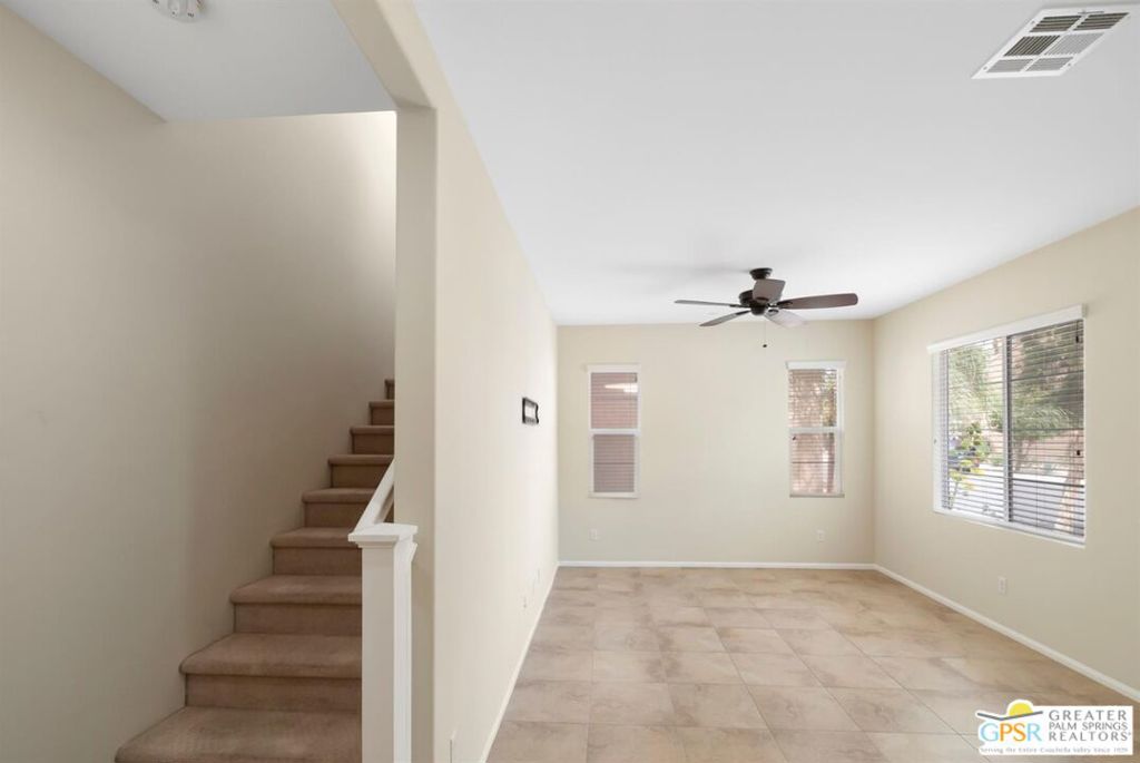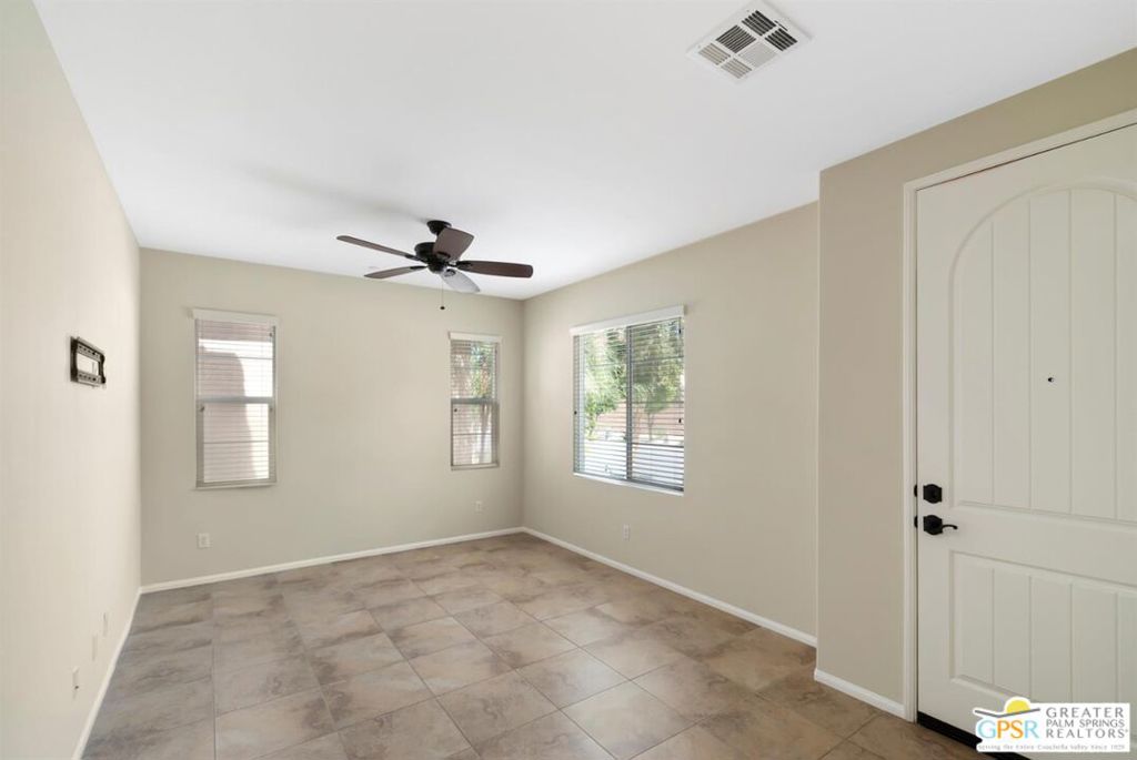 Beautiful Home in Highly Sought-After Spanish Walk Community! Located in the highly desirable Spanish Walk community of Palm Desert, this 3-bedroom, 3-bathroom home offers comfort, style, and resort-style living in a beautifully planned, gated neighborhood. This Spanish Mediterraneaninspired home features high ceilings, a neutral color palette, and a blend of tile and carpet flooring throughout. The kitchen is designed for both function and style with granite surfaces, stainless steel appliances, espresso-colored cabinetry, and a combination of recessed and pendant lighting. Ceiling fans throughout enhance comfort, while the open layout creates an inviting atmosphere for everyday living and entertaining. Enjoy outdoor living in the private rear patio and yard area, perfect for relaxing or hosting guests. Additional highlights include a dedicated laundry room and a two-car garage with storage. Community amenities offer a true resort-style experience and include: Three community pools and spas, fitness center and billiard room, playground and community park, BBQ areas, walkable, well-planned neighborhood design, low HOA dues. Conveniently located just minutes from golf courses, shopping, dining, entertainment, hiking, and freeway access, this home offers the perfect blend of lifestyle and location in one of Palm Desert’s most popular gated communities.