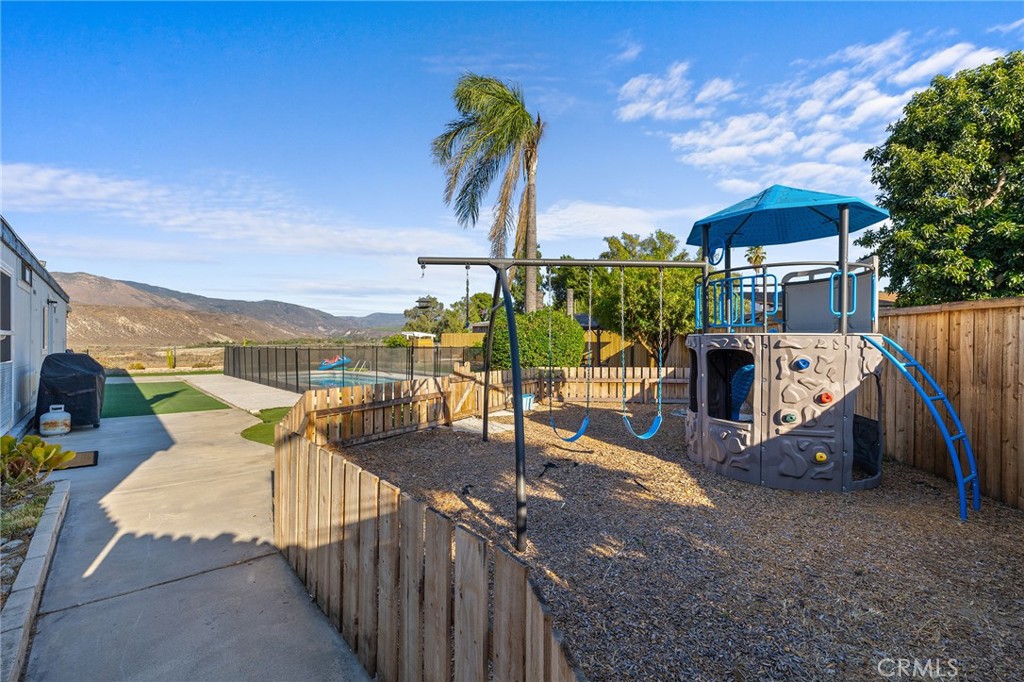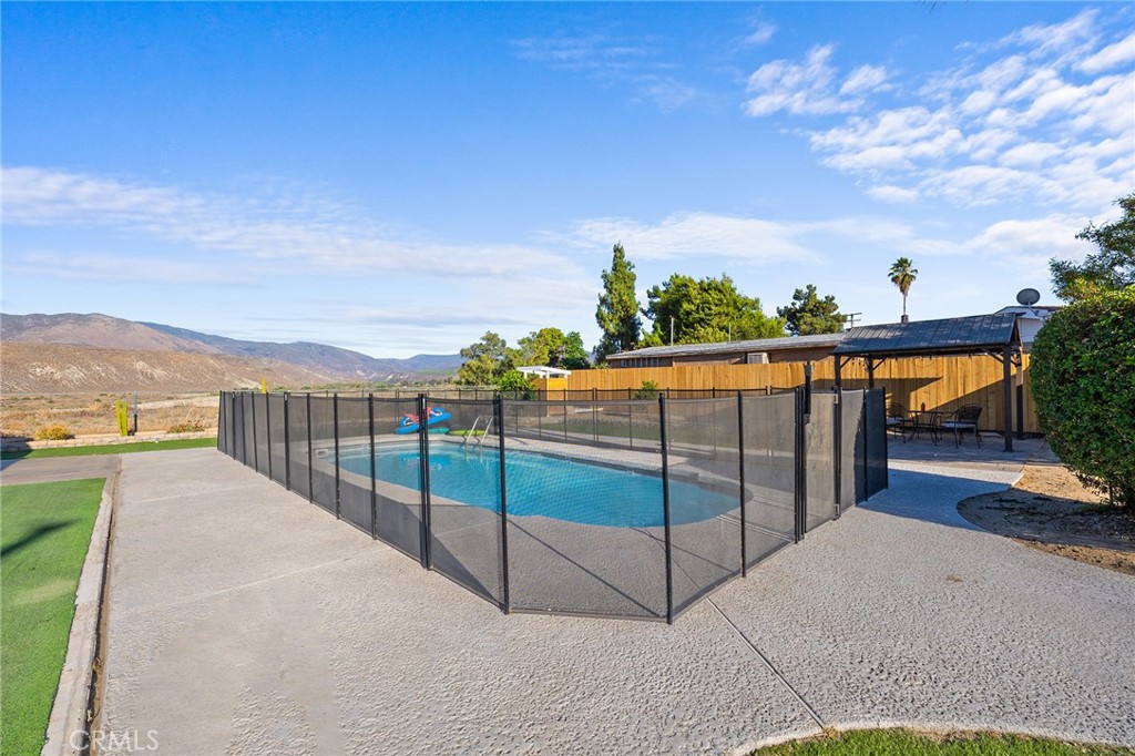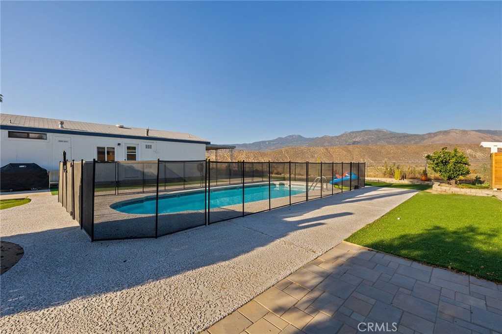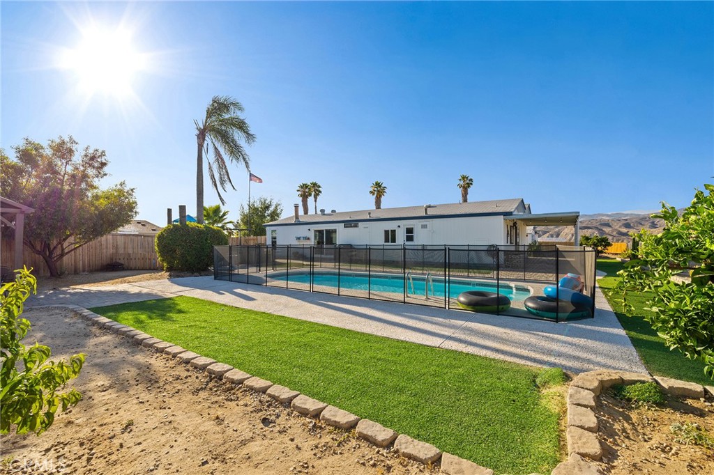 Seller September promotional offering $5,000 credit to a buyer for a COE by 10/3/25. Buyer’s be moved in for the Holidays! Turn-key and Move-in ready! You own the land! Three bedrooms/ Two full baths with 3rd bedroom as optional office. Double car garage is ADU ready. Single family residential home at the end of a peaceful cul-de-sac! Nestled on a generous 0.30-acre lot (13,068 sq ft) plenty of room for family, friends and pets. This beautifully updated 1,920 sq ft Silvercrest “Howard Manor” triple wide home offers panoramic San Jacinto Mountain views. Home has 433 certified permanent foundation, making it a standout in both quality and security. NOHOA and low taxes, you get the best of both worlds space, privacy, and affordability. Step inside to an open-concept layout bathed in natural light through vaulted ceilings, fresh paint, and vinyl wood plank flooring throughout, complemented by newer double-pane windows. The heart of the home is the chef’s-grade kitchen, featuring custom hardwood countertops, a six-burner stovetop, a GE double oven, and a deep stainless-steel sink all complemented by an included, color-matched refrigerator. From the kitchen’s eat-in nook to the adjacent formal dining area and great room with a rustic rock fireplace, this space is designed for entertaining and everyday joy alike. The primary suite is a serene retreat, featuring a vast walk-in closet and a new sliding glass door that leads to a covered patio perfect for morning coffee with mountain views. A second oversized bedroom and two well-appointed bathrooms complete the interior, balancing comfort and function. Outdoors, a sparkling child-safe pool is fenced and surrounded by fully fenced yards and complemented by a custom play structure, a mature vegetable garden, and ample RV/boat parking behind new wood fencing. Climate efficiency is ensured by a 2-in-1 all-electric split HVAC system in the two car garage with potential for ADU. With thoughtful updates, turnkey move-in readiness, and a fantastic location, this home is an entertainer’s dream and oh-so-sweet to call your own.