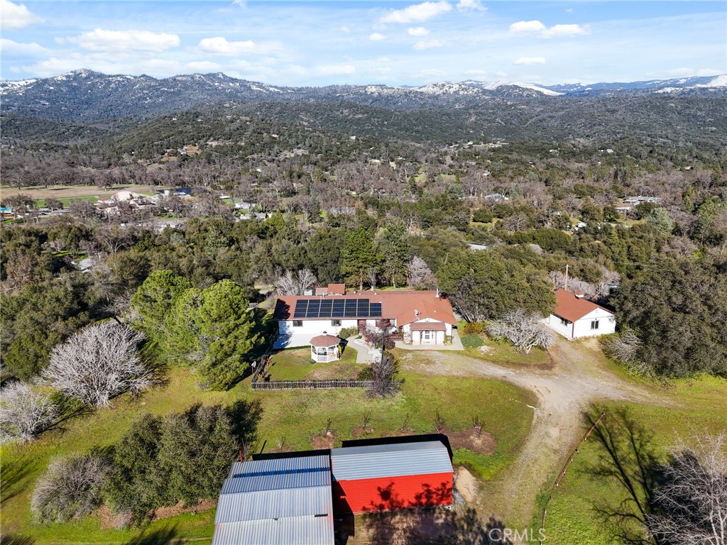 Welcome to this beautifully remodeled, move-in ready estate where the views are endless and the opportunities are even greater. Whether you’re searching for a full-time residence, weekend escape, or income-producing retreat – the choice is yours. Set on 2.88 private acres with breathtaking 360-degree mountain views, this turnkey remodeled property offers flexibility, privacy, and charm at every turn. The main residence features 4 bedrooms and 2 bathrooms with thoughtful updates throughout. The detached ADU includes 1 bedroom, 1 bathroom, a kitchenette, and its own mini-split system, ideal for guests, extended family, or rental income. Live in the main home and rent the ADU, rent both for maximum income potential, or create a private multi-generational compound. With three gated entrances, you can easily section off areas for privacy, horses, or separate access points. Equestrian lovers will appreciate the 2-stall horse barn, equally suited as a workshop, hobby space, or even a unique event area. There is RV parking, two storage sheds, one of which is just off the primary suite and has been transformed into a cozy private library, the perfect retreat for morning coffee, reading, or working from home. The grounds are beautifully landscaped and burst with flowers throughout the summer months. A tranquil koi pond in the backyard creates a peaceful setting, while the front gazebo offers the perfect place to relax and take in the mountain views. Enjoy your own mini orchard with apple, apricot, peach, plum, pear, and pomegranate trees, along with grapevines, bringing beauty and abundance to the land. Conveniently located just 10 minutes from Oakhurst for everyday shopping, dining, and local conveniences, and only a short drive to the iconic Yosemite National Park and the recreational paradise of Bass Lake. Enjoy the perfect balance of privacy and accessibility – close to everything, yet peacefully tucked away. Private. Versatile. Income-ready. With 3,583 square feet of living space, expansive acreage, and unmatched views, this is a rare opportunity to own a property that truly offers it all.