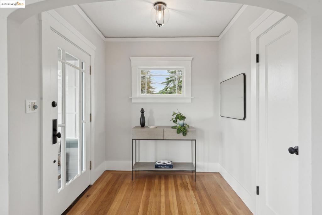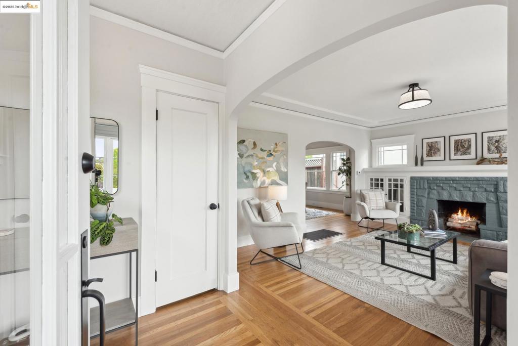 For Craftsman enthusiasts, this classic 1922 Bungalow just blocks from Piedmont Ave, is not to be missed. You’ll be immediately impressed by the abundance of natural light gracing every room. The timeless architecture features beautifully preserved built-ins, hardwood floors, and a signature fireplace that draws you into the spacious living room with a peek of downtown SF. The generously proportioned dining room exudes both period charm and chic, modern elegance, and is perfect for entertaining and hosting memorable holiday meals. The sunny kitchen is a soulful union of past and present, featuring a skylight, a new gas range, rich, honed countertops, and a cozy breakfast (or office) nook with a lovely backyard view. The 2 bedrooms are at each end of the hall, with the beautifully updated bathroom featuring a heated floor and Carrara marble, separating them. The thoughtfully designed backyard, bursting with color, will lure you to enjoy the nearly perfect year round Oakland weather, lounging outdoors with friends and dining under the stars. A brand new furnace and newly installed ducting will keep you toasty throughout the colder days. You’ll love the superb location between both Piedmont and Grand Avenue shopping districts & the proximity to Kaiser facilities and public transit.