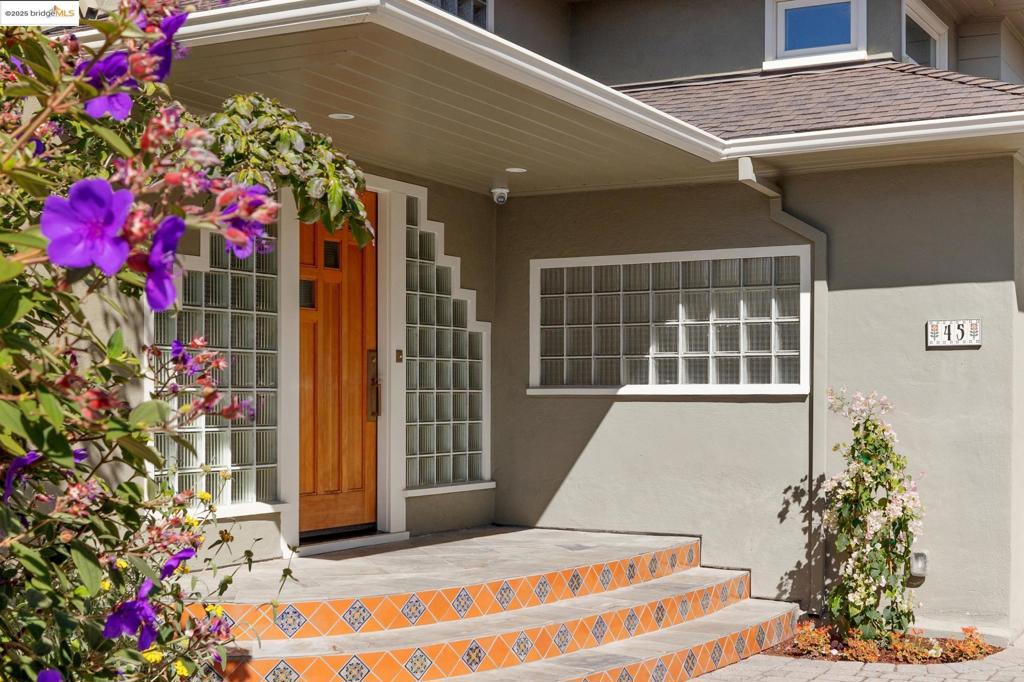Elevated north Berkeley Hills Bay-view home on double lot. With a complete down to the studs renovation from 2018 – 2020. With no telephone poles and wires obstructing world class views of the San Francisco skyline, Bay Bridge, straight on views of the Golden Gate Bridge, Mt. Tam and the Richmond San Rafael Bridge. Living, dining, and lower-level entertainment rooms showcase expansive windows framing Bay vistas, the largest stretching 12 feet across the dining room. Top-to-bottom transformation of everything from foundation to solar roof panels and all in between: plumbing, electrical, hardwood flooring, dual-pane windows, HVAC, appliances, lighting, and more. In a fresh take on the home’s original aesthetic, Art Deco motif brings geometric glamour. Radiant, connected public spaces, where expansive windows frame panoramas of five counties and three iconic bridges, include a dine-in island-centric kitchen. A family room with the second fireplace opens to paver terrace and landscaped garden, plus grand-scaled living, dining, and entertainment rooms. The attached ADU, which also looks to the Bay, features a separate entry, upscale full kitchen and bathroom, multipurpose living area, plus dedicated deck. Two car garage plus driveway for seven cars.