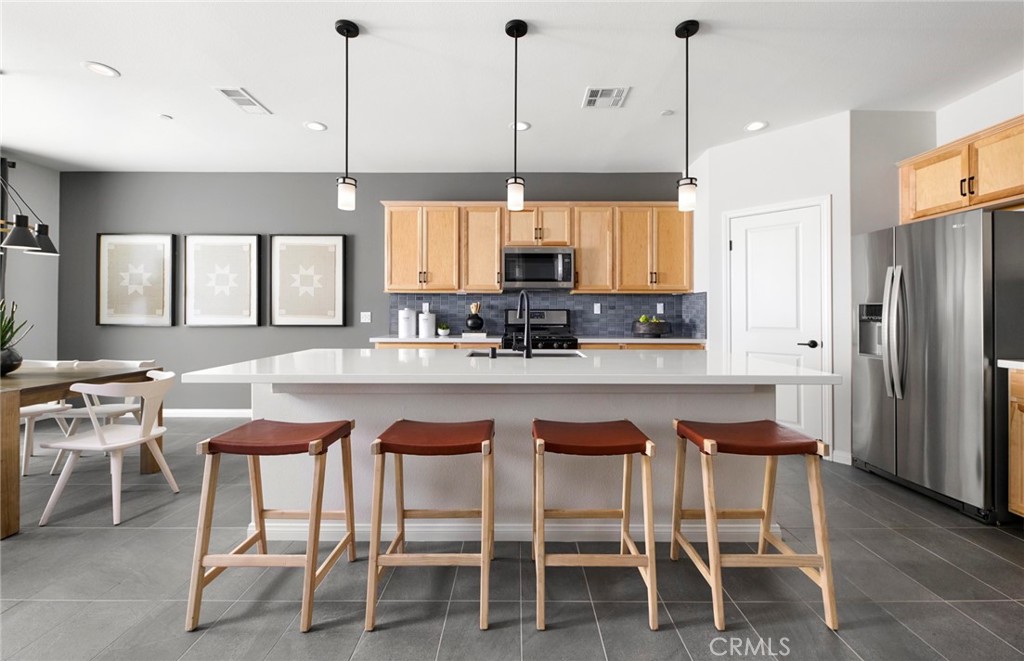Popular Visionary Model at Stratford Place! This is a rare NO-HOA community in close proximity to Lake Perris, schools and shopping. -Model kitchen with walk in pantry -White quartz countertops -Downstairs 5th bedroom -Large loft -Model upgraded flooring -Backyard landscape