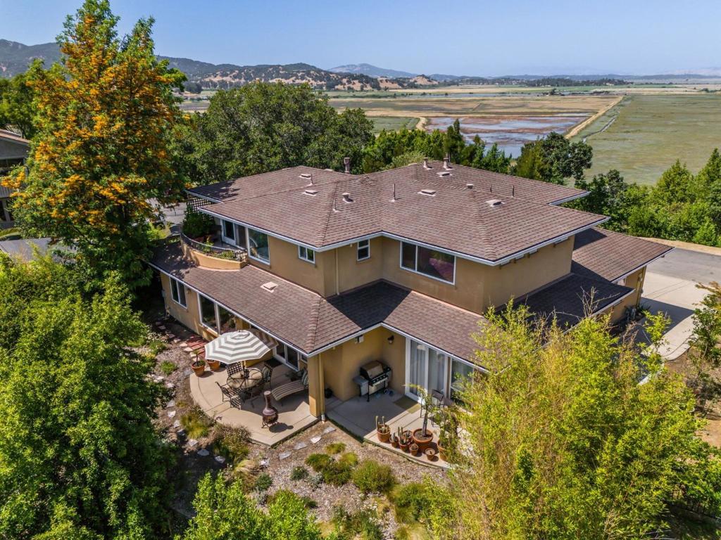 At the very edge of China Camp, nestled on the final residential street before the preserve begins, 454 Upper Road delivers the true Marin lifestyle; nature, serenity, & sophisticated design Set at the top of a secluded private road, this refined home offers commanding views; Gaze over rolling green hills, panoramic vistas of the San Pablo Bay, creek wetlands & Sonoma ridgelines. Arched entryways & soaring ceilings create an uninterrupted visual flow from room to room. The main level offers expansive entertaining spaces, including a formal living & dining rooms.The adjacent family room is open to the chefs kitchen & breakfast are with custom built-ins, beautiful views, perfect for relaxed everyday living or seamless indoor-outdoor entertaining. Down a garden path a treehouse studio awaits, an inspiring space for music, meditation, workouts or writing. Upstairs, find two spacious bedrooms & a grand primary suite with dual-view balconies, a spacious bath with dual sinks & soaking tub An independent junior suite with new wood flooring, private entrance, wet bar & Lori bed for guests or multigenerational living. Convenient to The City & Sonoma via ferry, freeway or the SMART train. 454 Upper Road is your peaceful retreat at the center of it all.