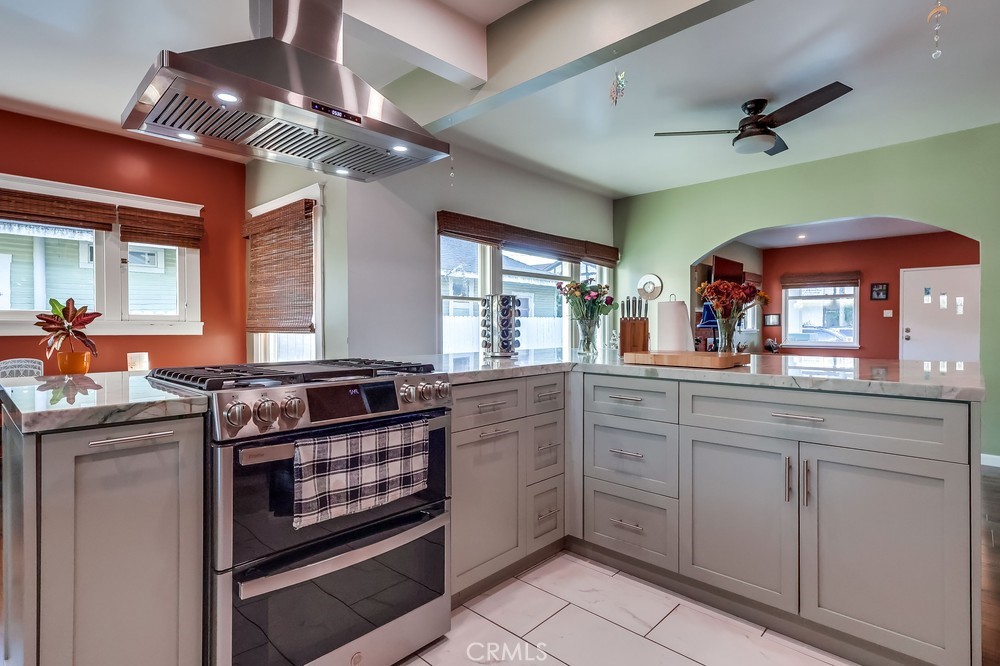 This early-century Craftsman home has been immaculately remodeled and features an accessory dwelling unit (ADU), perfectly situated in the heart of the vibrant “Retro-Row.”The home showcases the timeless appeal of Craftsman style with its classic pitched roof, original hardwood floors, unique archways, and double-hanging windows. Upon arrival, the inviting red door and covered front porch set the tone for relaxation—ideal for a porch swing and a morning cup of coffee. Inside, a rustic brick fireplace welcomes you, complemented by abundant natural light streaming through multiple windows. The custom archway leads to a formal dining room, which connects to the kitchen, a cozy breakfast nook, and an additional family room. Both bedrooms are generously sized, with the master suite featuring an expansive walk-in closet to accommodate your storage needs. The long driveway easily accommodates parking for at least four vehicles, ensuring ample space for residents and guests alike. Out back, you’ll find a beautifully landscaped yard perfect for entertaining or relaxing in privacy. Well-manicured lawn and patio space are ideal for barbecues or quiet evenings under the stars. Newly built one-bedroom ADU with dedicated kitchen area provide luxury living or rental income with nicely appointed fit and finishes.