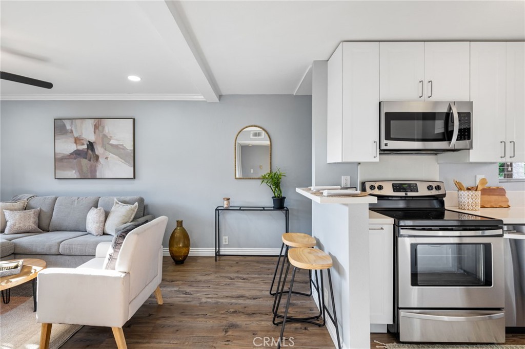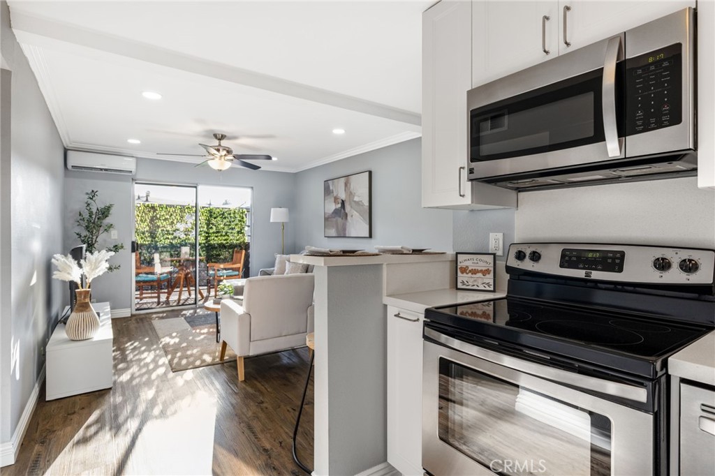 This Complex is FHA & VA Approved! Welcome to 460 Golden Avenue, unit 209. This 1 bedroom/1 bathroom end unit has only 1 shared wall and no one below, featuring a single attached garage with an additional private storage cabinet, entrance to the community and an automatic door opener for hassle-free parking. This completely remodeled unit has a private balcony, luxury highlights of crown molding in the living room and bedroom, completely remodeled kitchen with quartz counter tops, soft closing drawers & ample number of cabinets for all of your kitchen essentials. The layout of this unit is perfect with efficient use of space and storage with a additional kitchen pantry with pull out drawers for easy access, an ensuite walk-in closet in the bedroom & 4 cabinet linen closet in the hallway. Enjoy the newly installed mini-split Air Conditioner & recessed lights in the living room, new paint & updated floors throughout, living room ceiling fan, all appliances & in the hallway closet washer/dryer stackable included. Refreshing highlights in the bathroom include a window, bathtub refinish, new shower spout, handle, shower head, tub drain and overflow cover, new double handle faucet & new light fixture. The complex has an updated elevator for ease of access throughout the community. Ceasar Chavez park is just across the street, located close to downtown, Ride your bike on the Long Beach bike path to the beach just minutes away, a couple of blocks to an elementary school, convenient access to the 710 freeway, public transportation, blocks to Pine Avenue restaurants and entertainment, close to The Pike, Queen Mary & Aquarium of the Pacific. HOA includes Earthquake Insurance, water, and trash along with common area upkeep. Pet friendly community. This unit is ideal for urban living, call & schedule showing today!