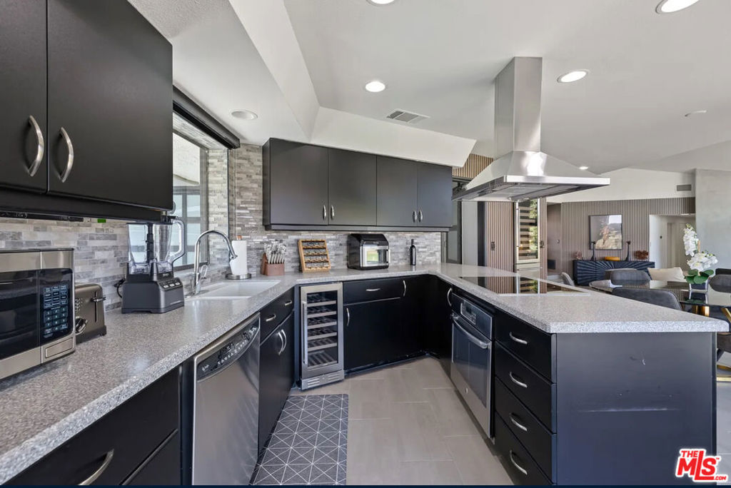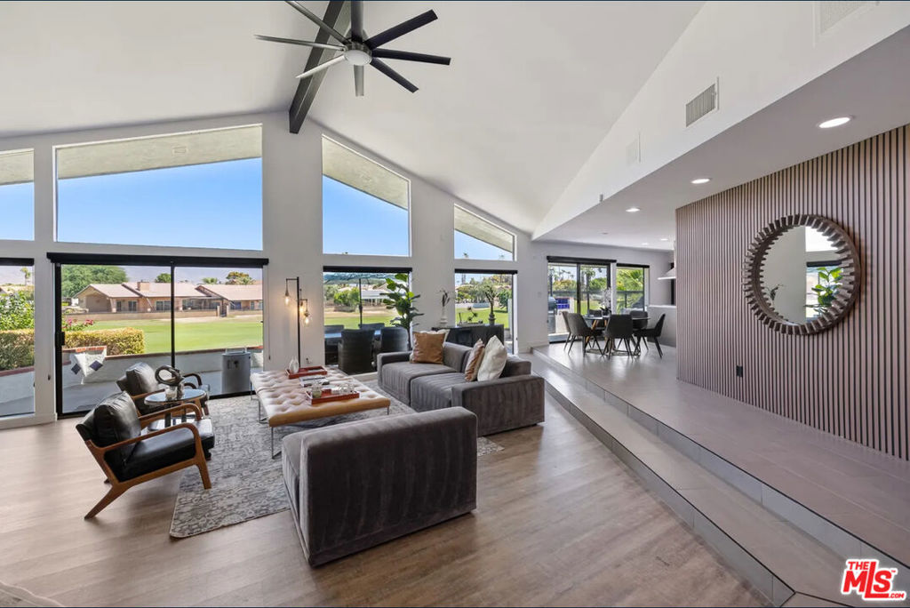 Mid-century modern masterpiece by renowned architect Carl Cox, custom-built in 1978 and thoughtfully remodeled with over $150k in upgrades. Perched on the 11th hole of Big Rock Golf Course, this home captures sweeping views of the greens and Chocolate Mountains, all with no HOA. The main residence features a dramatic sunken living room with cathedral ceilings, floor-to-ceiling windows, and an updated fireplace. A sleek modern kitchen with black cabinetry opens to an entertainer’s patio with a built-in BBQ island. The primary suite offers a Japanese soaking tub and a private “air-drying” patio for spa-like relaxation. A detached casita provides flexible space for rental income, guest quarters, or a private office. Additional highlights include custom fireplaces, a wine fridge, a new pool and spa (2024), and contemporary design throughout. Currently operating as a successful short-term rental with AvantStay, this property offers both luxury living and strong investment potential. Ideally located near premier dining, shopping, and desert festivals, don’t miss this one-of-a-kind La Quinta gem.