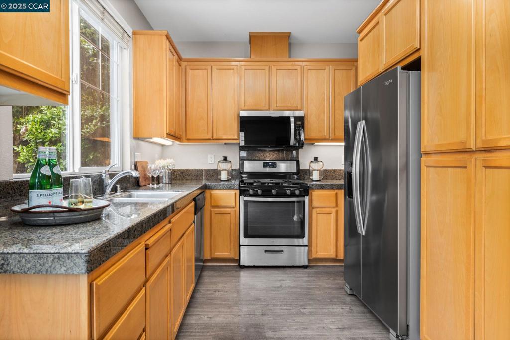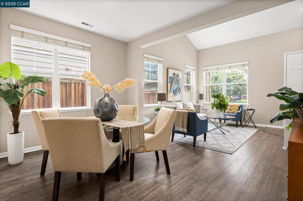 Situated in the Garin Corners of Brentwood, this 3-bedroom, 2.5-bath home combines 1,741 sq. ft. of living space with a desirable court setting near schools, parks, and everyday amenities. The main level showcases LVP flooring, recessed lighting, and a welcoming living room that flows into the dining area and kitchen with granite counters, stainless appliances, and abundant cabinetry. A spacious family room with an adjacent half bath adds versatility for gatherings, movie nights, or play space. Sliding doors open to a private patio retreat with mature landscaping, ideal for dining or relaxing outdoors. Upstairs, the primary suite includes a walk-in closet, tray ceiling, and a refreshed bath featuring a recently installed shower enclosure and vanity mirror. Two additional bedrooms, a full bath, and a dedicated laundry room complete the upper level. Fresh carpet, modern lighting, and abundant natural light enhance the home throughout. Located in Garin Corners, this home includes HOA-maintained front landscaping, walkability to top-rated Garin Elementary and Edna Hill Middle, with Liberty High nearby. Shopping, dining, parks, Highway 4, and BART are all within easy reach.