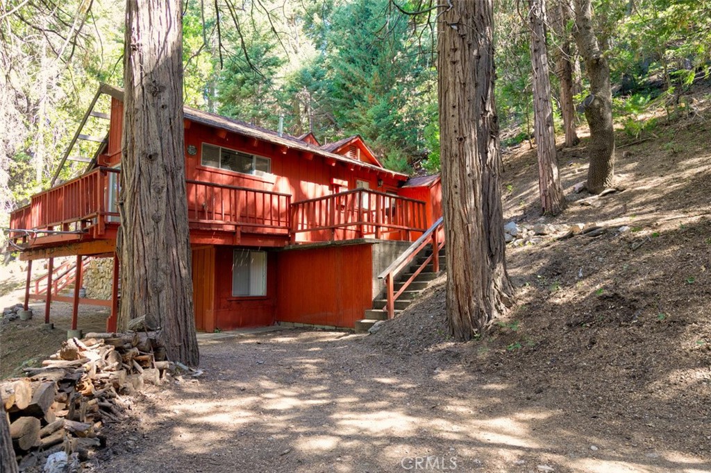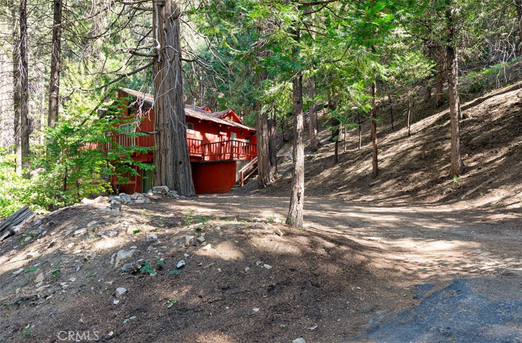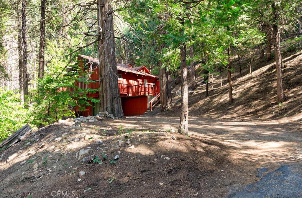 Rustic Cabin in Blue Jay Canyon is nestled in a gated community surrounded by lush dogwoods, towering pines, and the soothing sound of a seasonal creek. Situated on a paved road across from a seasonal creek, this cabin offers both privacy and serene natural beauty. Resting on a nearly 10,000 sq. ft. lot, it features 3 bedrooms and 2 bathrooms – waiting to be discovered. It is ready for you to move in, or remodel it with the County-approved plan which is included in the price. Currently, the main level showcases a living room with a large brick fireplace, a dining area with big windows, two bedrooms, and the galley kitchen. On the lower level, a third bedroom and full bathroom + a bonus room. Sliding patio doors open to decks surrounded by trees. Outdoors, the generous lot offers multiple flat and usable areas for gatherings. The oversized driveway can accommodate several vehicles, ensuring ample parking for family and friends. Residents of Blue Jay Canyon enjoy community services including water, trash, and road maintenance, along with access to miles of private hiking trails that weave through breathtaking forest landscapes. A short walk outside the gate is Blue Jay Village where you will find Starbucks in Jensens market, post office, bank, restaurants and other services. EXTRA BONUS: A Remodel/Building Plan has been submitted to the County and the plan is included in the purchase price, offering buyers the opportunity to upgrade the cabin with ease.