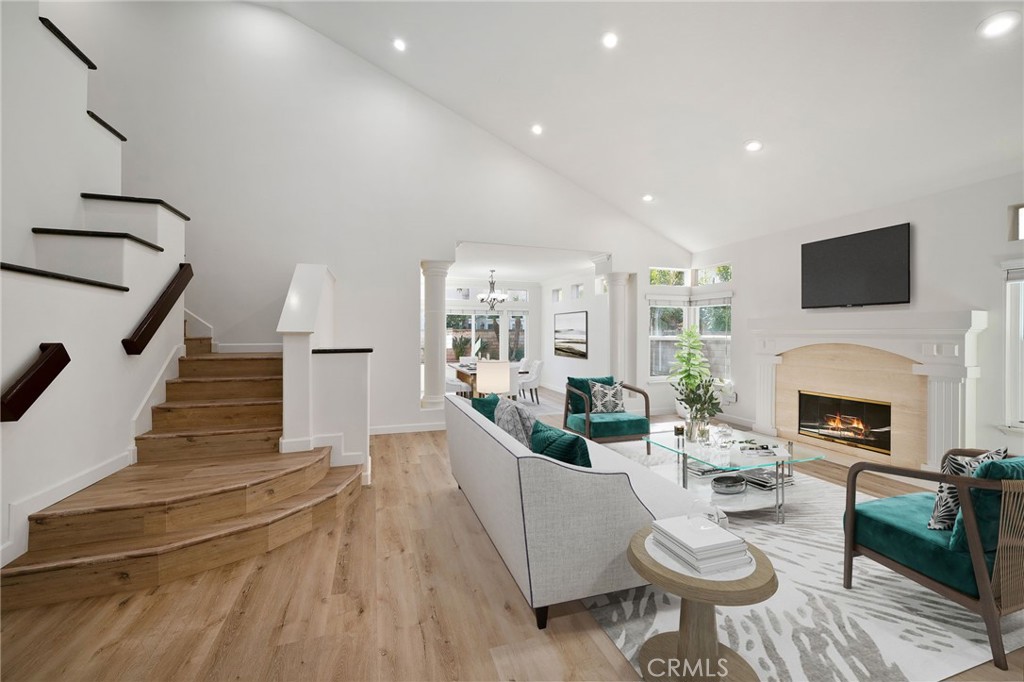 This impressive Collection Plan Three floor plan features 4 bedrooms, 3.5 baths, plus a main-level office (or optional 5th bedroom). A grand double-door entry welcomes you to soaring two-story ceilings and an open, light-filled floor plan accented by canopy windows. The formal living room with fireplace flows seamlessly into a bright dining area overlooking the backyard. Fresh two-tone interior paint and brand-new wide-plank vinyl flooring on the main level enhance the home’s modern aesthetic. The spacious separate family room offers recessed lighting and a second custom-finished fireplace. The upgraded chef’s kitchen features new quartz countertops, a center island, recessed lighting, and stainless-steel appliances – including refrigerator, gourmet range with hood, and dishwasher. Additional main level features include the sunny daily dining area and an oversized interior laundry room (the largest of all Sorrento models) offering abundant cabinetry, brand new quartz counter with sink, and direct access to the side yard. Luxurious Primary Suite & Spacious Bedrooms: Upstairs, the private primary suite welcomes you through double doors into a retreat with volume ceilings, plantation shutters, and elegant window design. This suite includes a large walk-in closet and a spa-inspired bath featuring a spa tub, separate shower with new glass surround, and granite countertops with dual wash basins. The secondary bedrooms are generously sized. One is an additional suite with private bath, and the other two are highlighted with vaulted ceilings and large patterned windows. Additional highlights include dual-zone central air and heating systems, raised-panel interior doors, and softly rounded wall corners throughout. Outdoor Living: The spacious backyard is freshly landscaped and designed for entertaining with a covered patio and low-maintenance artificial lawn. The front yard is equally beautiful, with lush landscaping finished with an easy care artificial lawn for great curb appeal. The three-car garage with roll-up doors and windows provides ample parking and storage space. Prime Location & Community: Nestled in the desirable Sorrento community, this home is just a short walk to award-winning Cypress schools including Oxford Academy (testing required), Landell Elementary, Arnold Elementary, and Lexington Junior High. Blending modern upgrades with timeless elegance, this home truly embodies the best of comfort, style, and location.